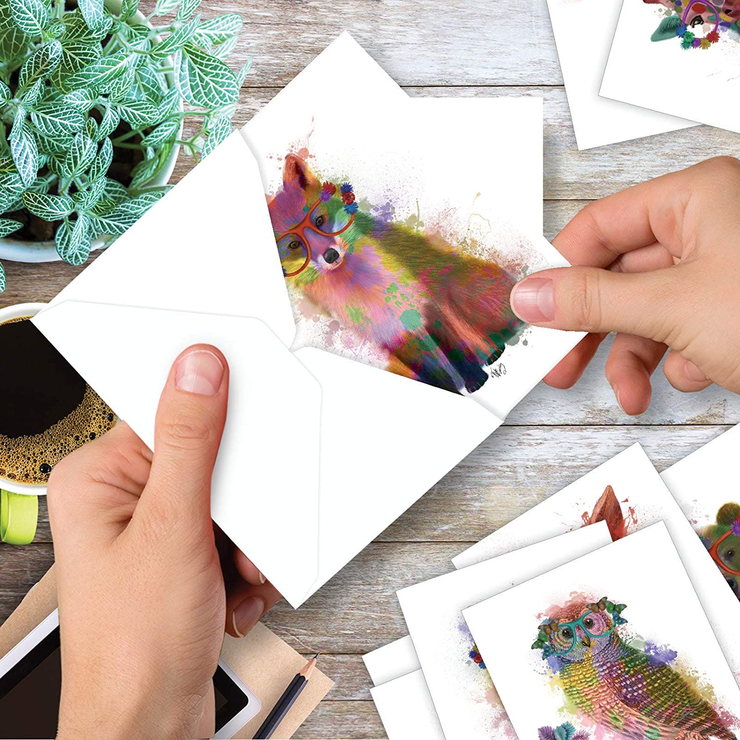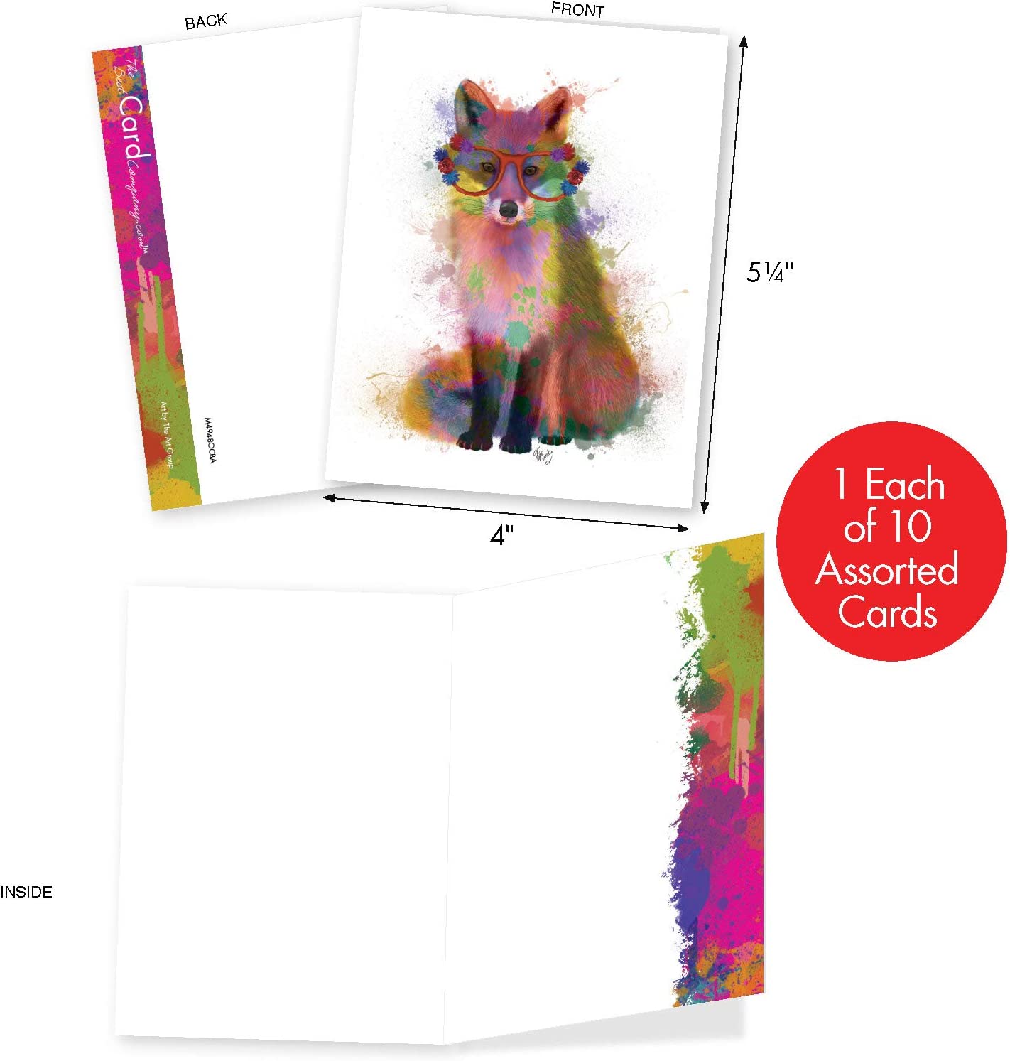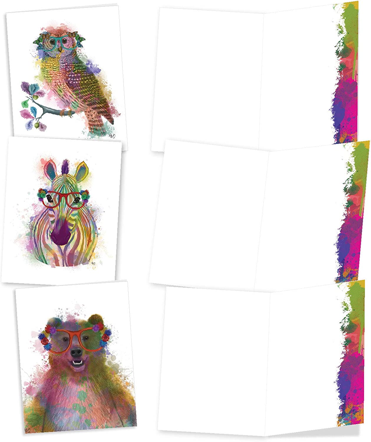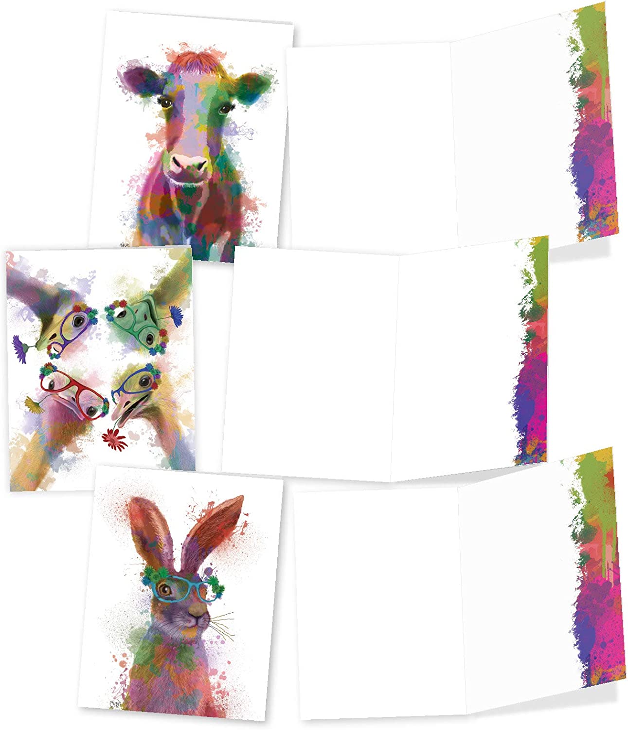 The Best Card Company 10 Mixed Animals Watercolor Greeting Cards Blank with Envelopes Just Because