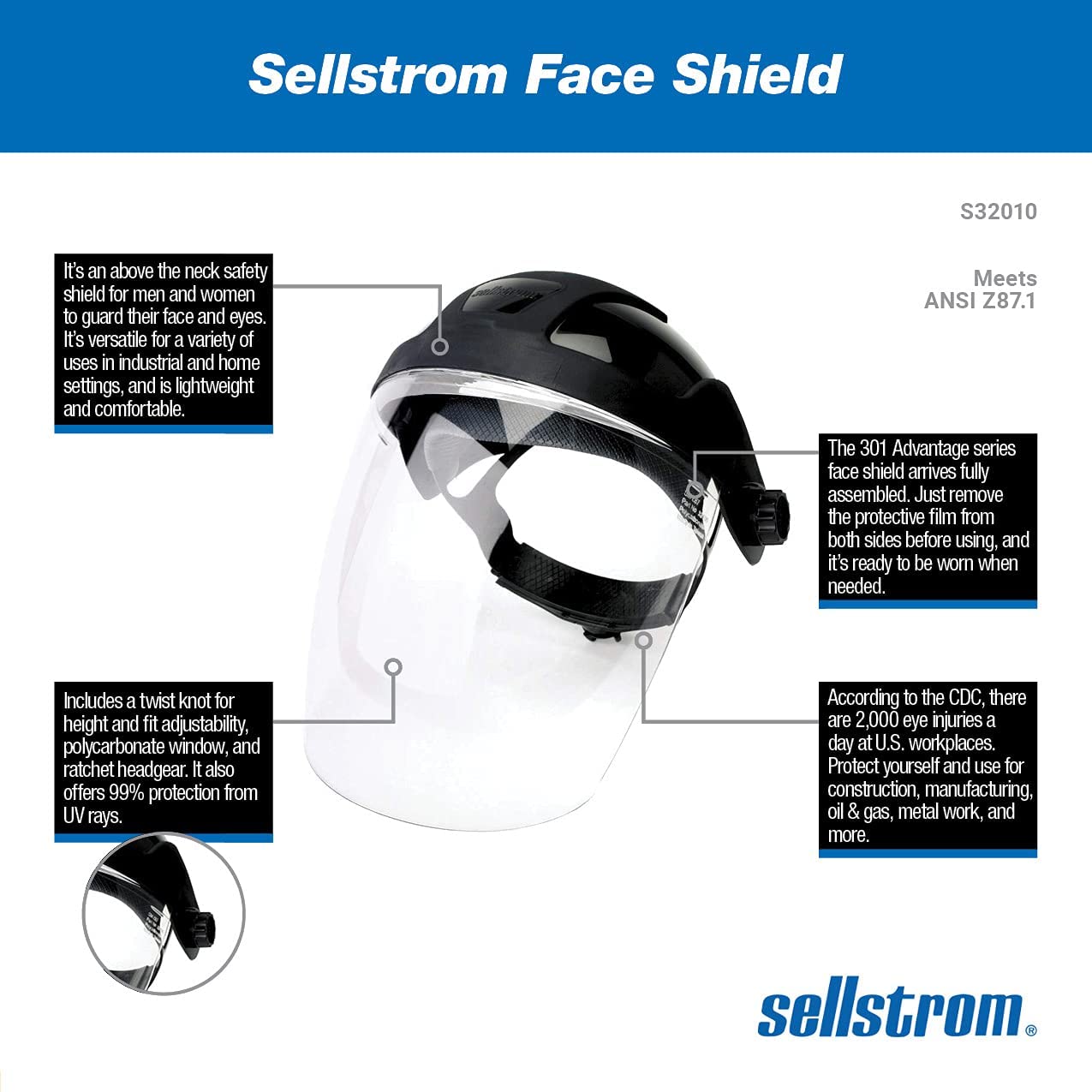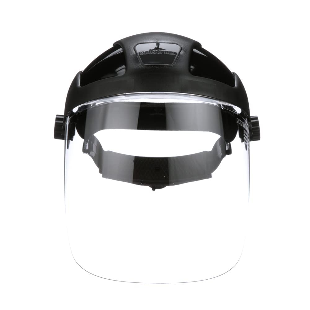 Sellstrom Face Shield S32010, Single Crown, Full Safety Mask for Men and Women, Clear Polycarbonate, Ratchet Headgear, Lightweight Comfort, ANSI Z87