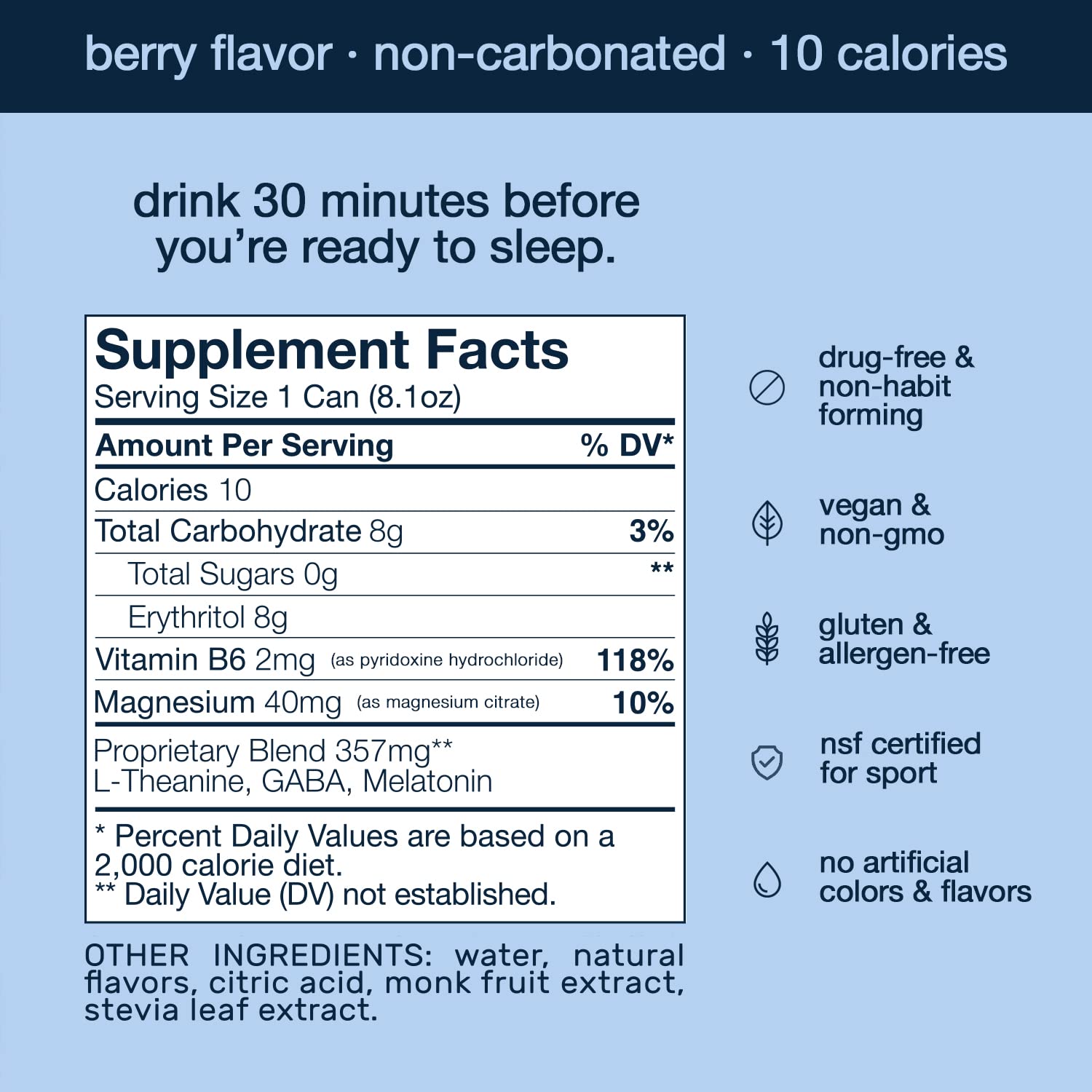 Som Sleep, The Original Sleep Support Formula w/Melatonin, Magnesium, Vitamin B6, L-Theanine & GABA – Vegan, Functional Nighttime Drink – Sleep Aid Supplement – Zero Sugar Berry, 8.1 Fl Oz, 12-Pack
