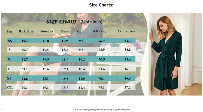 • 【Size Measurent】Our size are standard US size,please choose your general sleepwear robe size; Our Model Information: Height 5.74', Bust 33.46'', Waist 24.41'', Hip 36.22'' ,M size fits well.