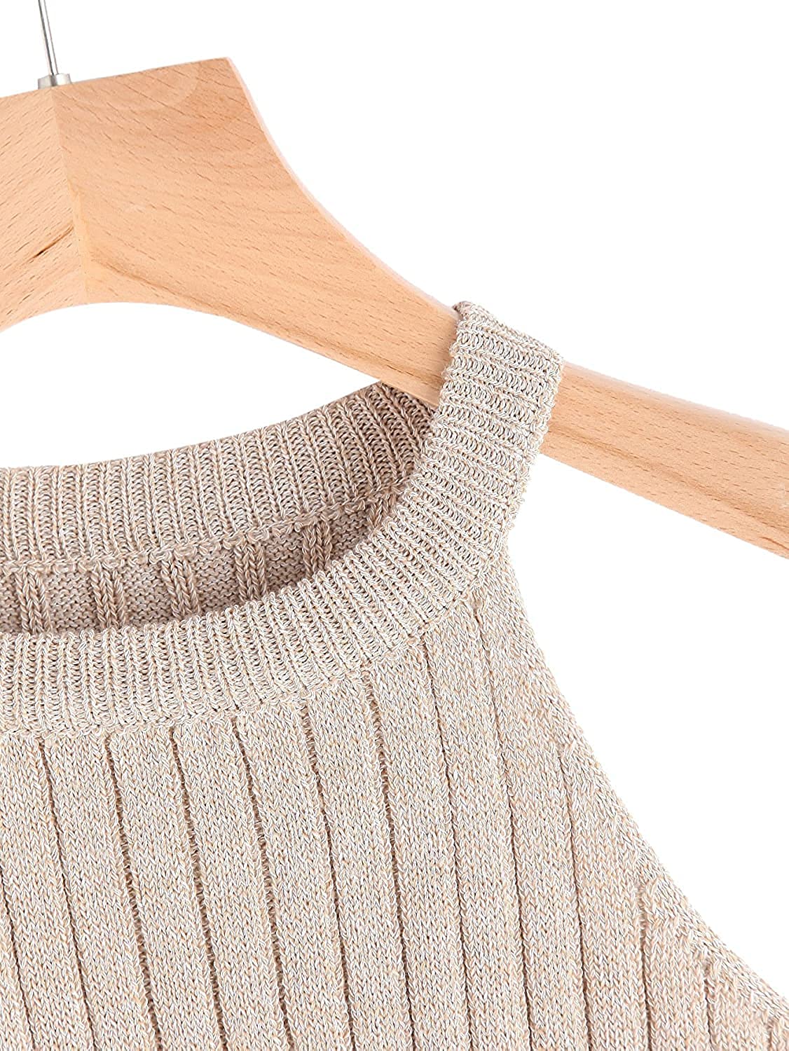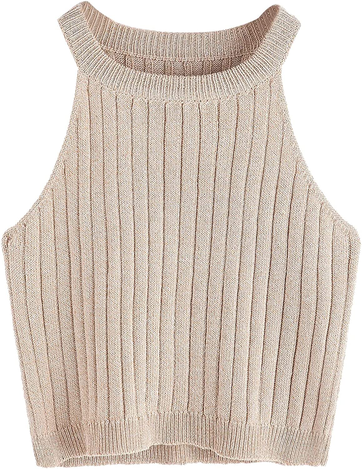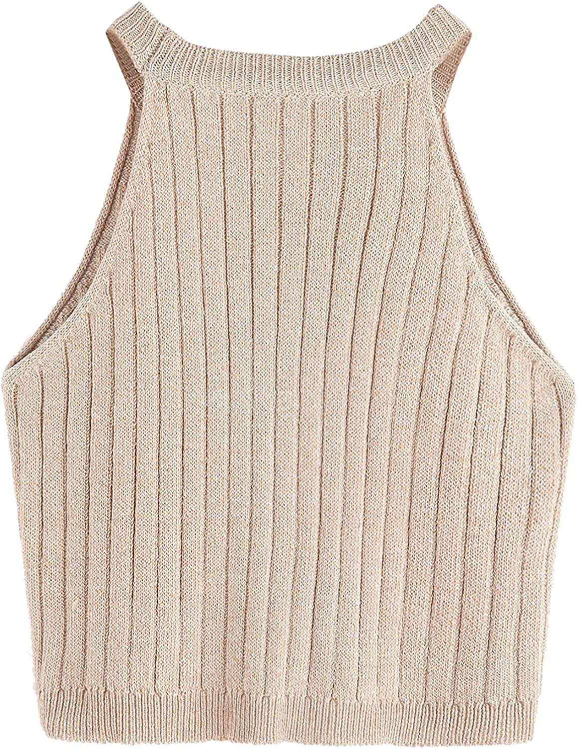 SweatyRocks Women's Knit Crop Top Ribbed Sleeveless Halter Neck Vest Tank Top