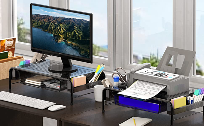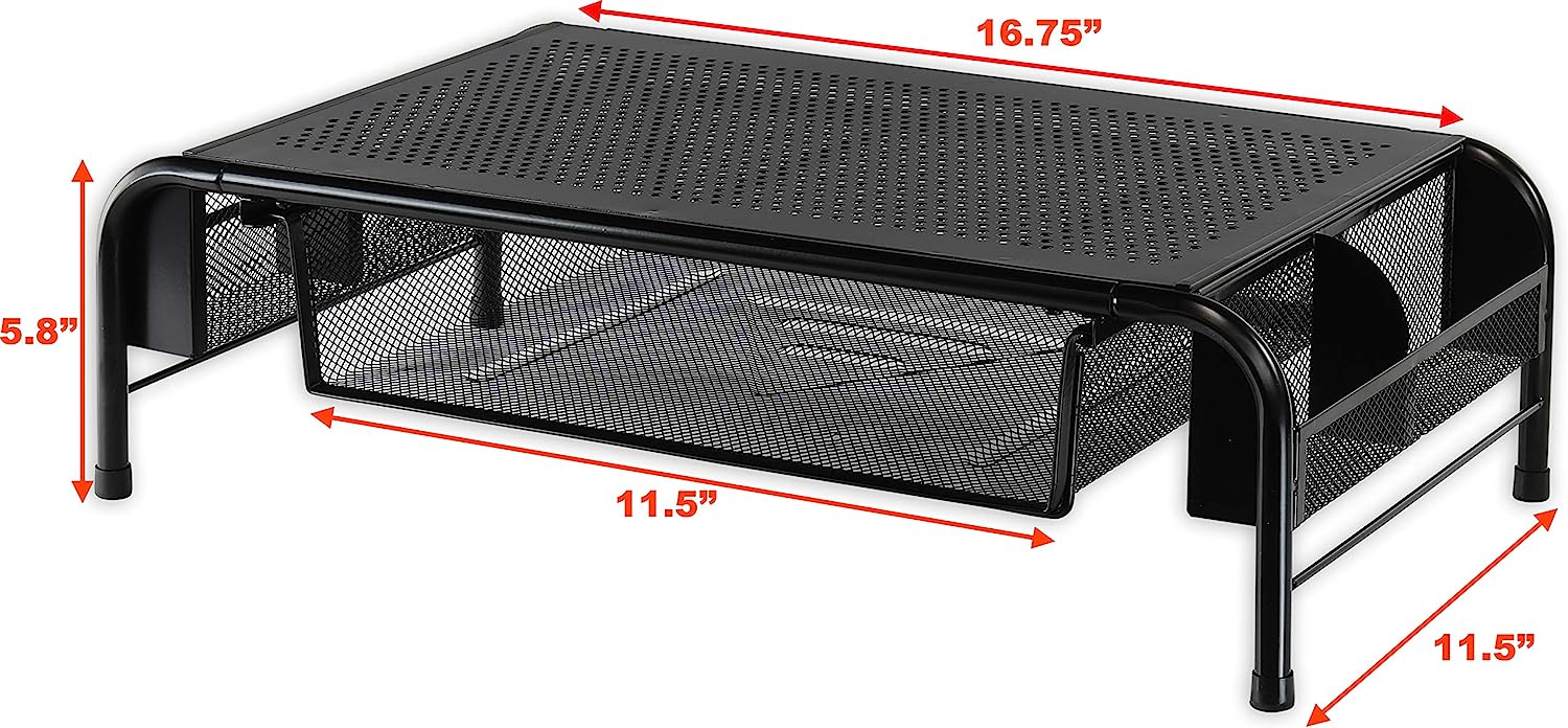 SimpleHouseware Metal Desk Monitor Stand Riser with Organizer Drawer