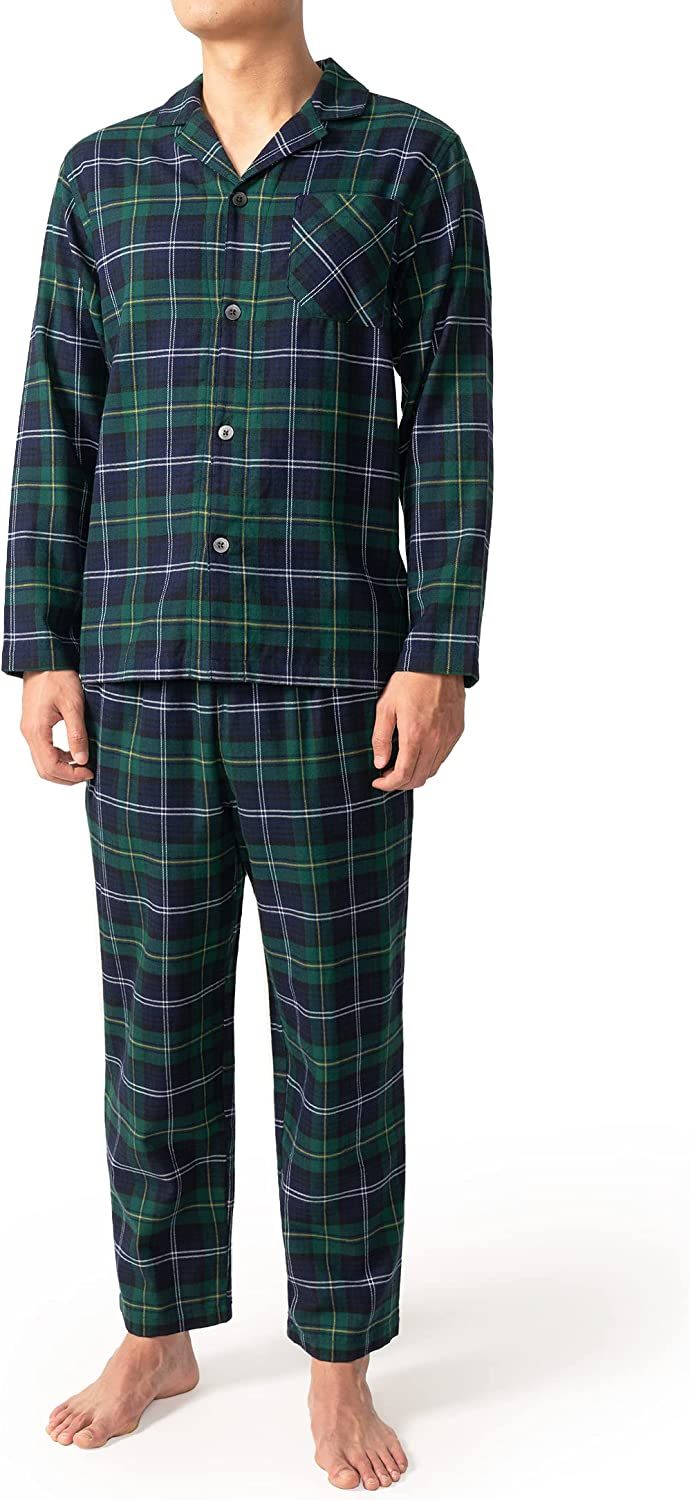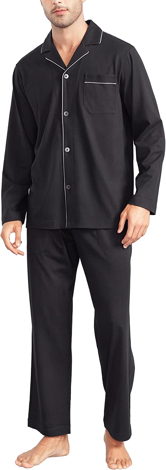 Button-down Collar: Long sleeve pajamas for men with pocket for a classic look