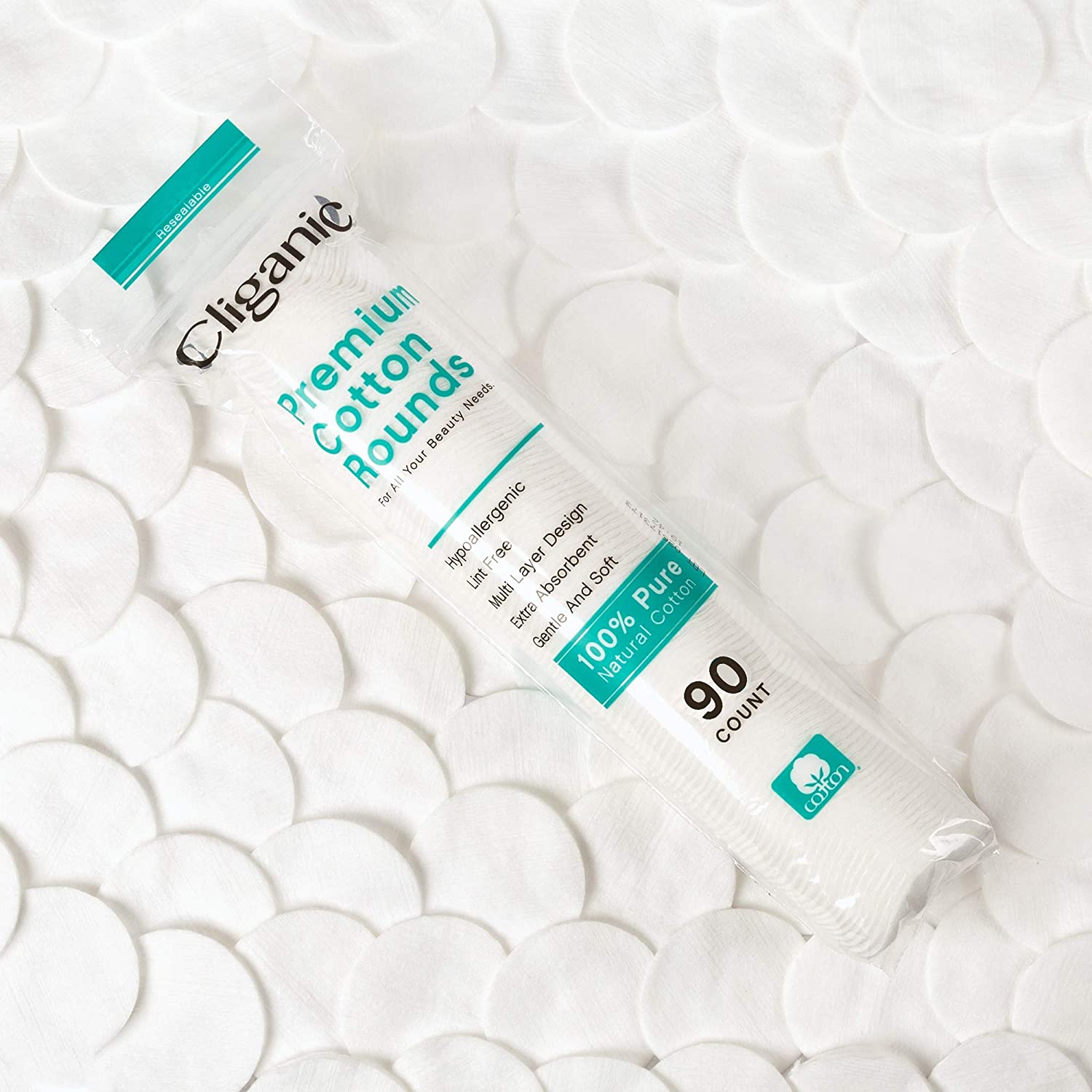 Cliganic Premium Cotton Rounds for Face (300 Count) - Makeup Remover Pads, Hypoallergenic, Lint-Free | 100% Pure Cotton