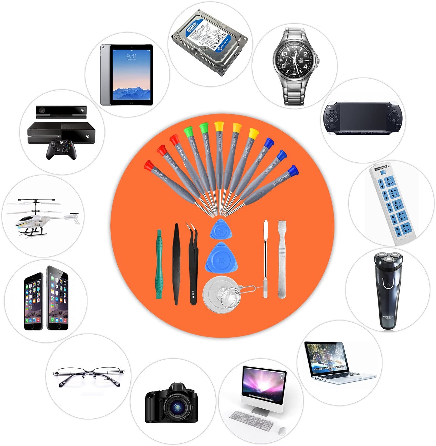 - 【 MULTIPURPOSE 】: repair kit set for different digital products, such as Mobile Phones (iPhone6/6s/7/7plus/iphone 8,xs, max, Samsung, LG, HUAWEI, Google, HTC), Computer, PC, laptop, desktop (HP, ASUS, Lenovo, Apple Macbook), Table, iPad, SLR cameras, Game Console (PS4, Xbox, Nintendo), game handle/joystick and other electronic devices. A Great GIFT for IT technician, technical engineer, hacker, electronics enthusiast, fixer, hobbyist, DIYer, student, housewife, ect.