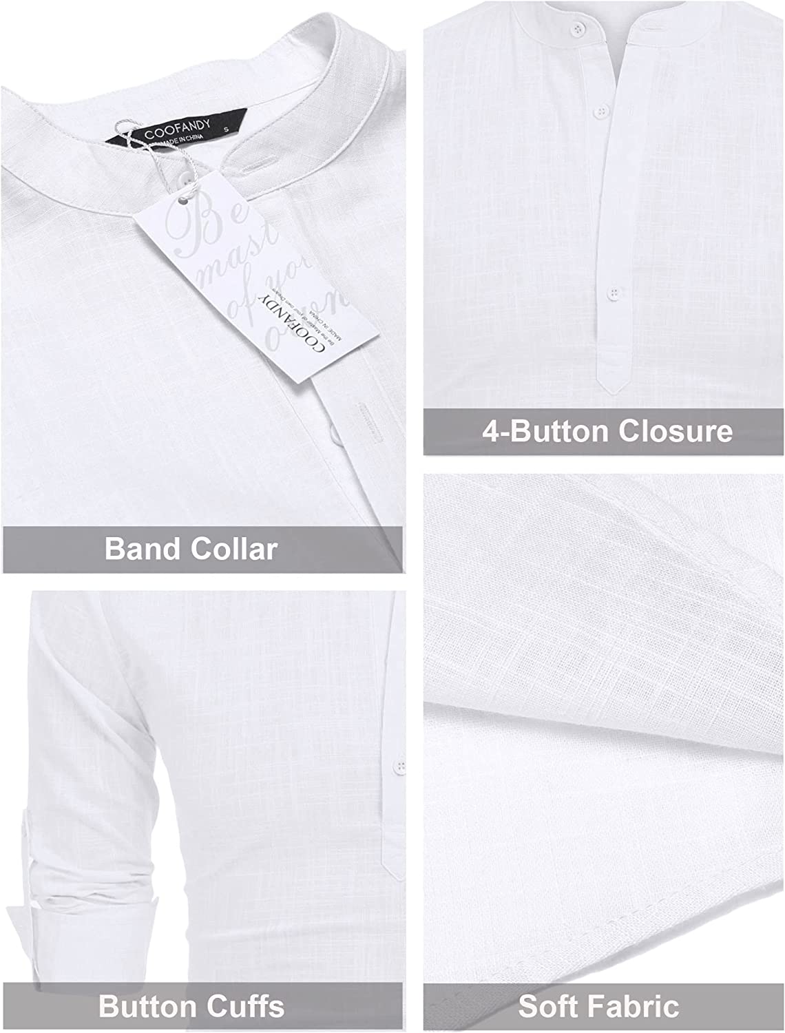 COOFANDY Men's Cotton Linen Henley Shirt Long Sleeve Hippie Casual Beach T Shirts