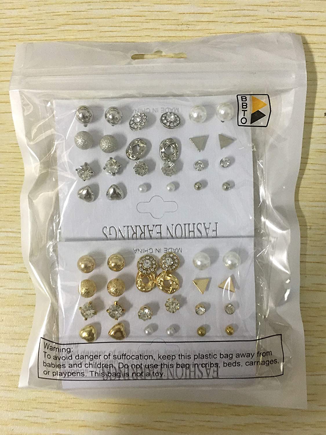BBTO 24 Pairs Stud Earrings Crystal Pearl Earring Set Ear Stud Jewelry for Girls Women Men, Silver and Gold
