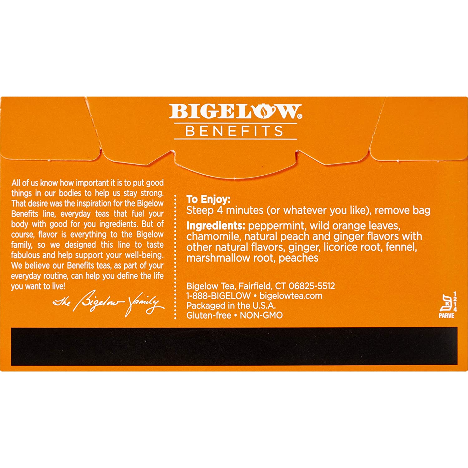 Bigelow Benefits Calm Stomach Ginger Peach Herbal Tea, Caffeine Free, 18 Count (Pack of 6), 108 Total Tea Bags