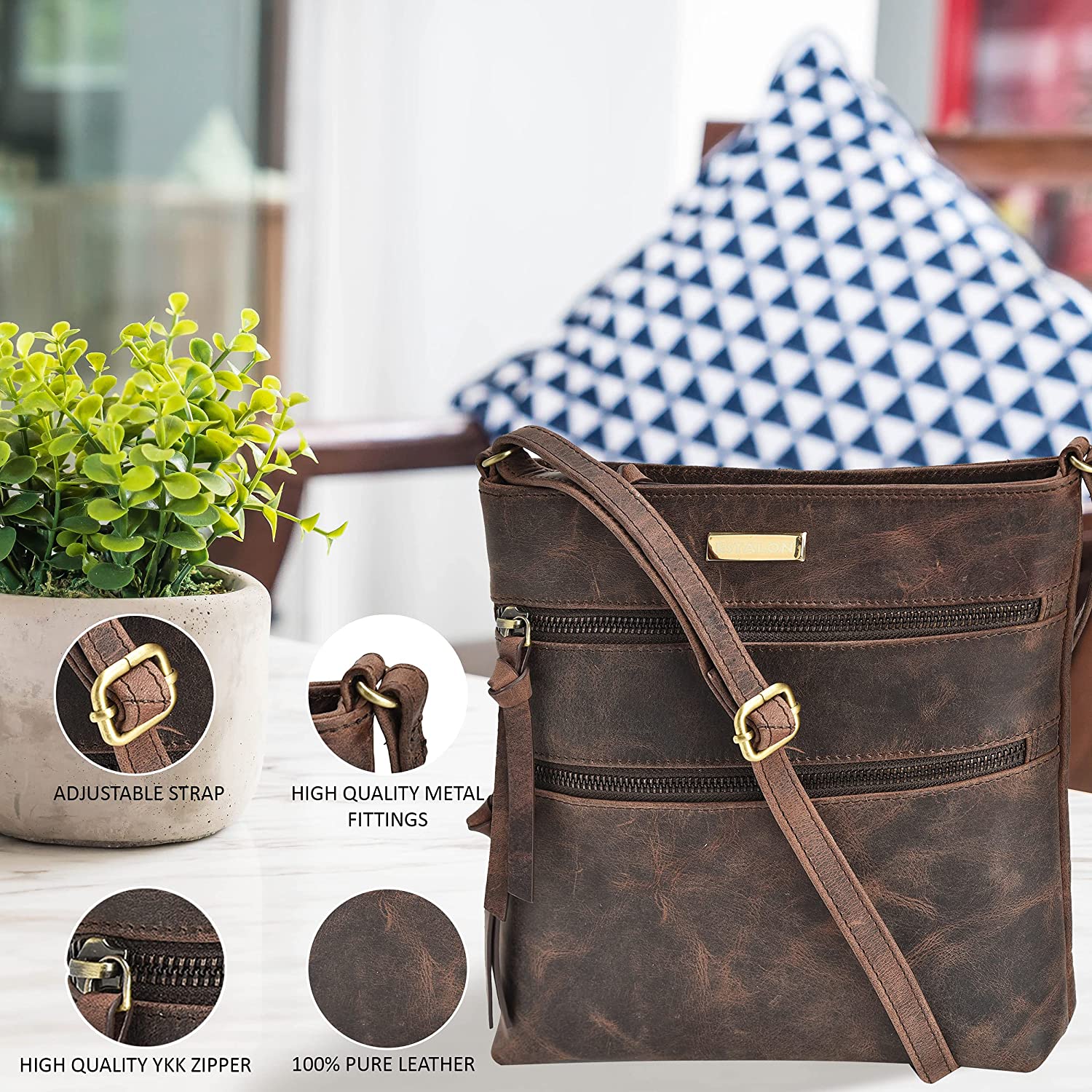 PREMIUM QUALITY: Enjoy the perfect mix of durability, softness, and utility with our women’s crossbody leather bag. Made with real leather, each stitching on the satchel is sewed with special care by professional artisans to make it timeless, lightweight, and fashionable. Every bag goes through a series of quality checks to ensure the best quality is delivered to you. The casual-cool over the shoulder look of this luxury purse brings a stylish and vintage flair to all your looks.