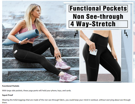 • Ultra-Stretch Fit: IUGA workout leggings for women are enough thickness & non-see-through that slims and conforms with each pose, movement and contour. Plus womens leggings with two side pockets to keep your phones, keys, or any essentials.