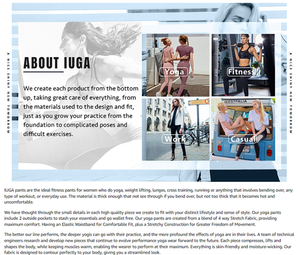 • IUGA is a lifestyle brand that combines Style, Comfort and Performance. The High Quality Activewear is perfect for Fitness Enthusiasts and Everyday Athleisure as it is Affordable and Accessible. Operating at the cross section between fashion and function, IUGA aims to please both The Everyday Fashion Consumer and The Ultimate Exercise Enthusiast.