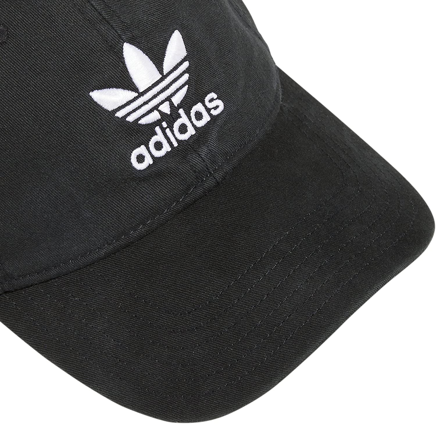 Cotton twill and a curved brim gives this cap an easy, casual vibe. the six-panel hat flashes trefoil embroidery in front, and an adjustable slider in back provides a just-right fit.
