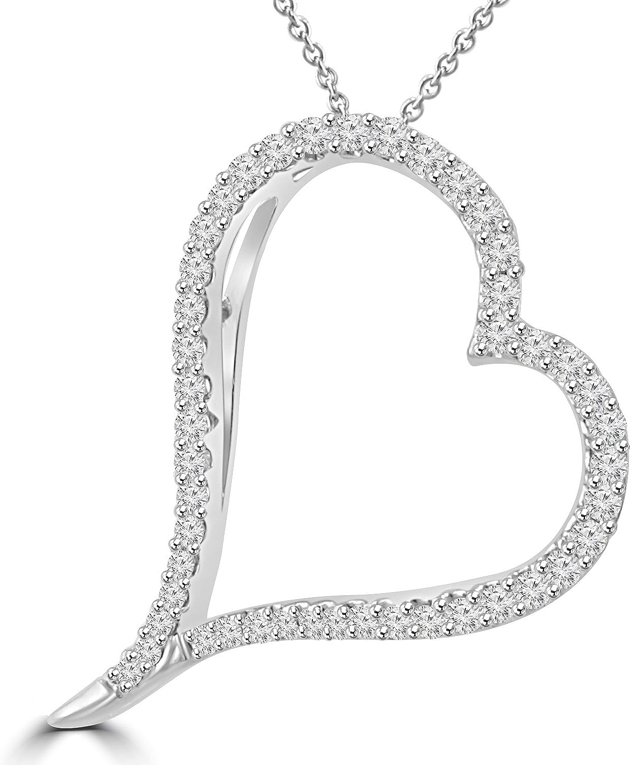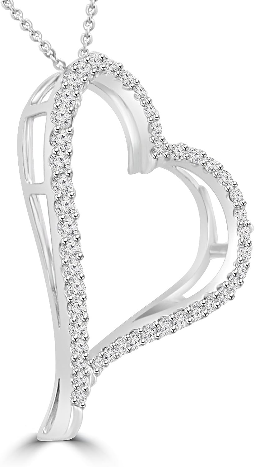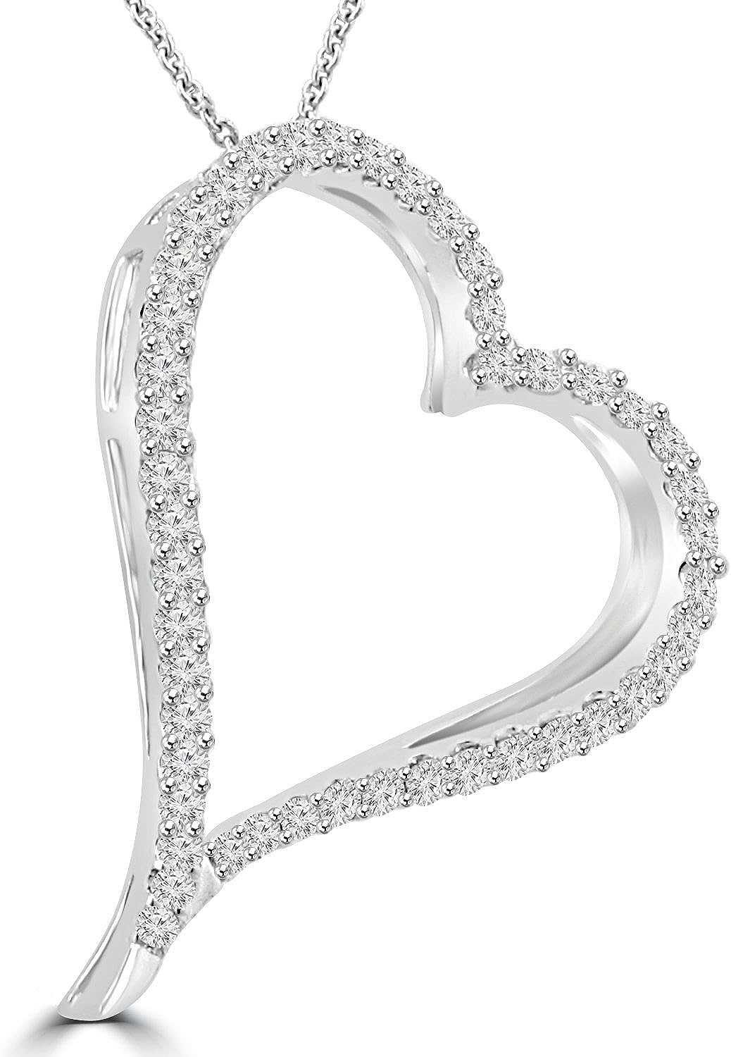 Madina Jewelry 1.39 ct Round Cut Diamond Heart Shape Pendant Necklace (G Color SI-1 Clarity) in 14 kt White Gold
