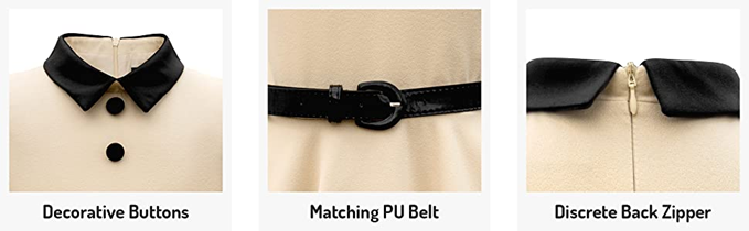 • Black collared neckline with decorative buttons