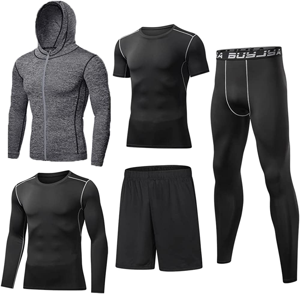 5 IN 1 SET---Compression outwear+Long sleeve+short sleeve+ running shorts + compression leggings,ultra-soft & smooth for extreme comfort with very little weight.Set sales, not only discounts, but also eliminates the trouble of matching.