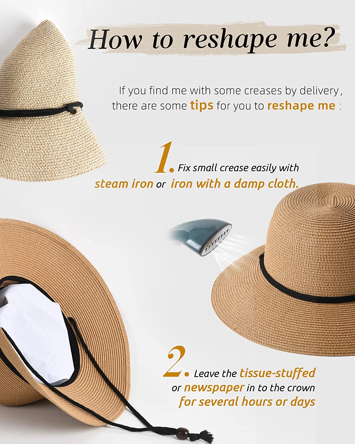 Foldable Braided Beach Hat: Packable and crushable, it can be folded for packing easily, back into shape nicely. Great for vacation, beach or pool, boating, paddle boarding, park walking, hiking, gardening or farm chores, family gathering ect