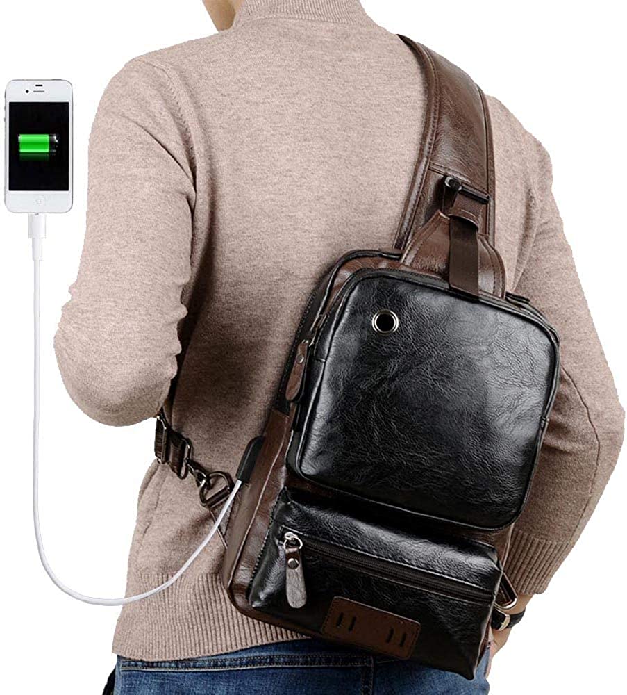 USB CHARGE AND EARPHONE JACK: This sling bag comes with a charging port you can connect your phone to and easily charge during outdoors and travel. Place your power bank inside the bag and connect your phone to the outer port. You can as well listen to your favorite music by connecting the headphone directly to your backpack