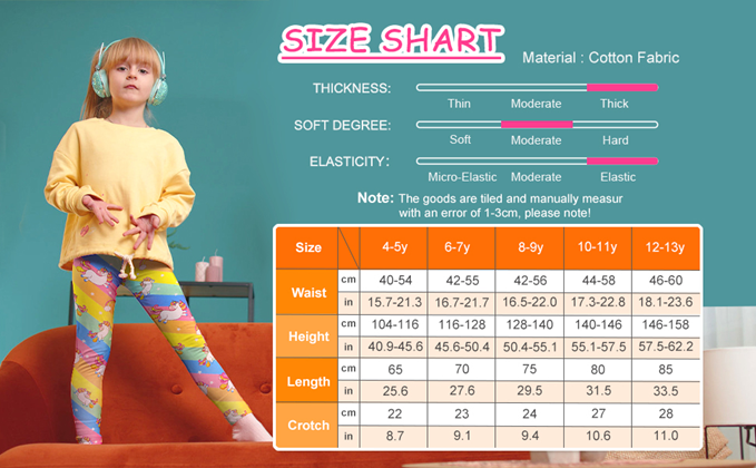 • 【RECOMMENDED SIZE】: These girls' leggings are available in ages 4-12, so you can easily choose the girl leggings that fit your child, (Size 4-5T,Size 6-7 Years,Size 8-9 Years,Size 10-11 Years, Size12-13 Years) girls active leggings:The designs are super cute and the style is trend and fashionable. which makes your kids stand out among peers.