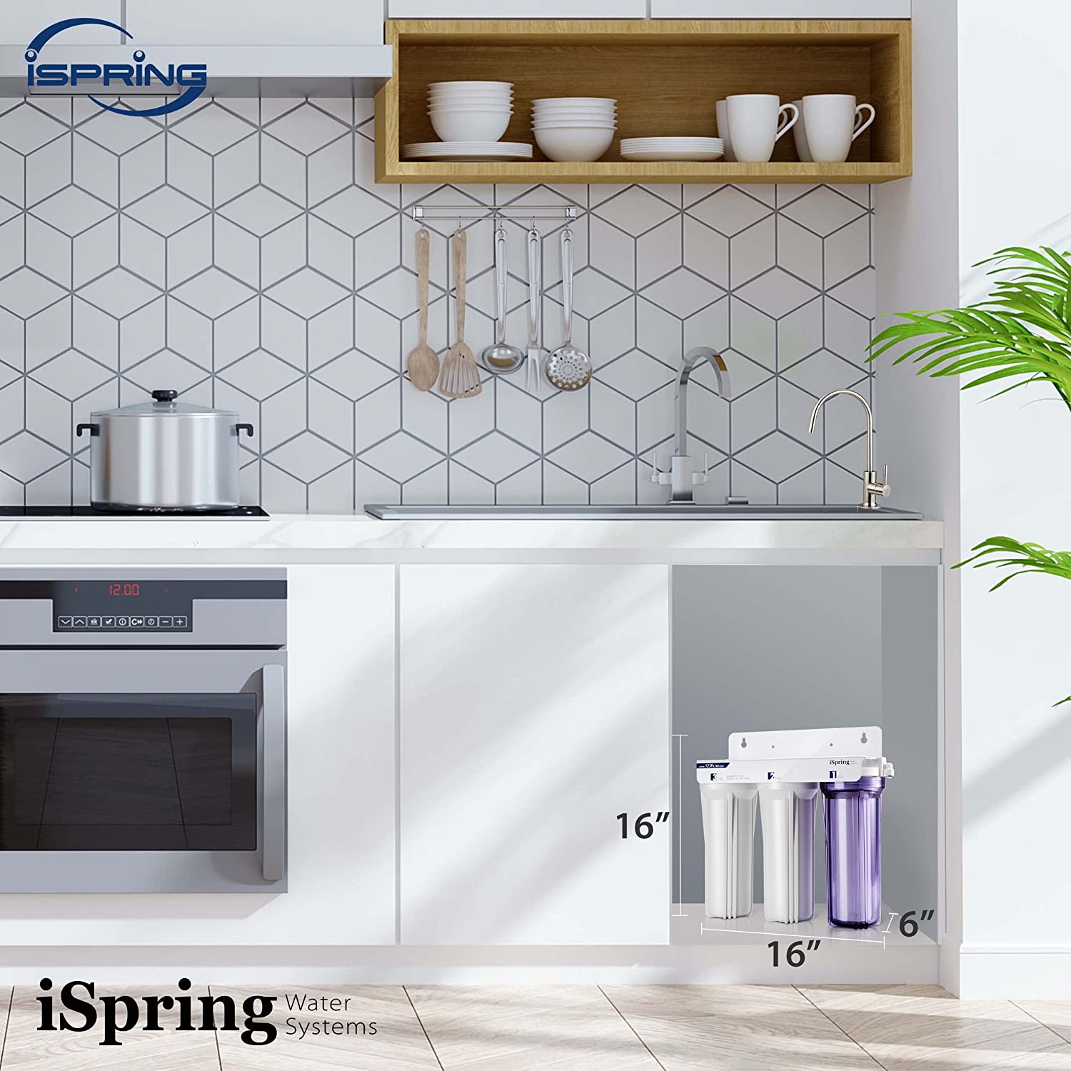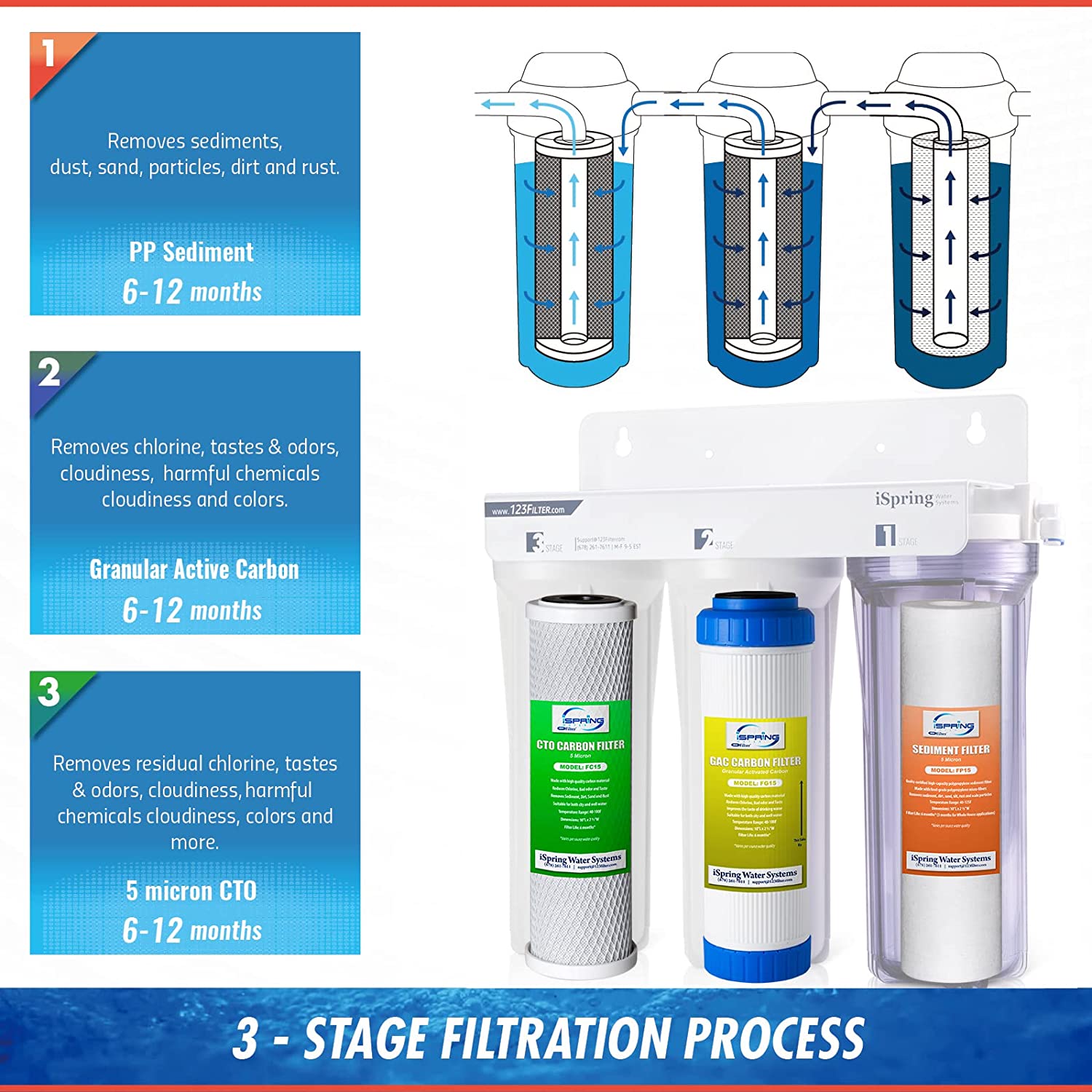 iSpring US31 Classic 3-Stage Under Sink Water Filtration System for Drinking, Tankless, High Capacity, Sediment + Carbon + Carbon (Newest Version)