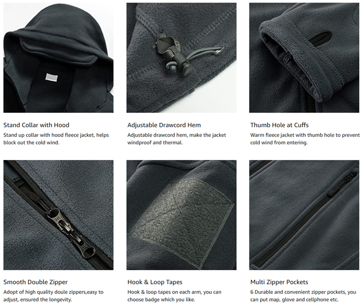 Warm Fleece: Men hooded tactical style jacket with ultra soft warm fleece
