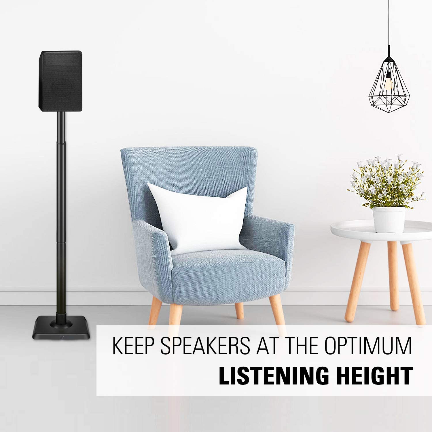 • Height Adjustment - The speaker stands with extendable tube allow to adjust the height from 33" to 42" for optimum acoustics. Perfect for your home/theater entertainment system.
