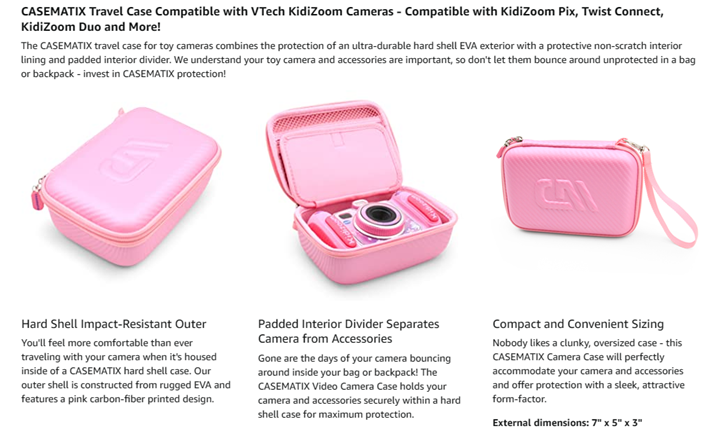 Protective Hard Shell Outer: The CASEMATIX Pink Toy Camera Case features a protective EVA exterior and fits multiple popular toy cameras!