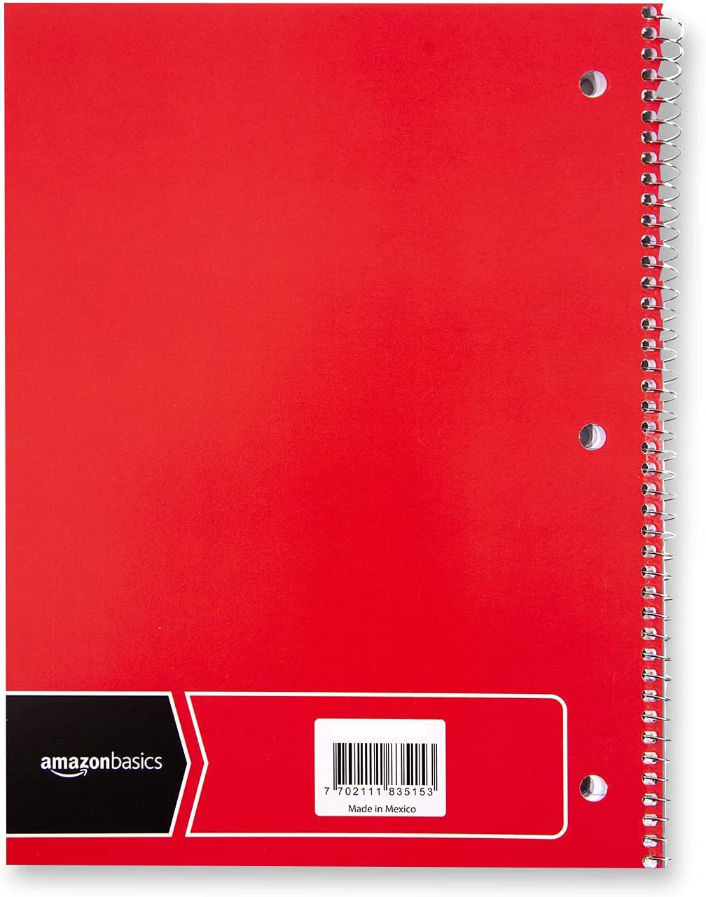 Amazon Basics College Ruled Wirebound Spiral Notebook, 100 Sheets - 5-Pack, Assorted Solid Colors
