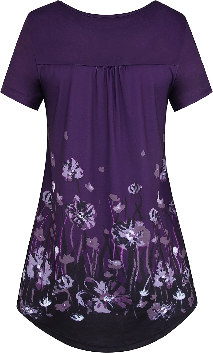 Bebonnie Women's Vintage Short Sleeve V Neck Pleated Tunic Shirt