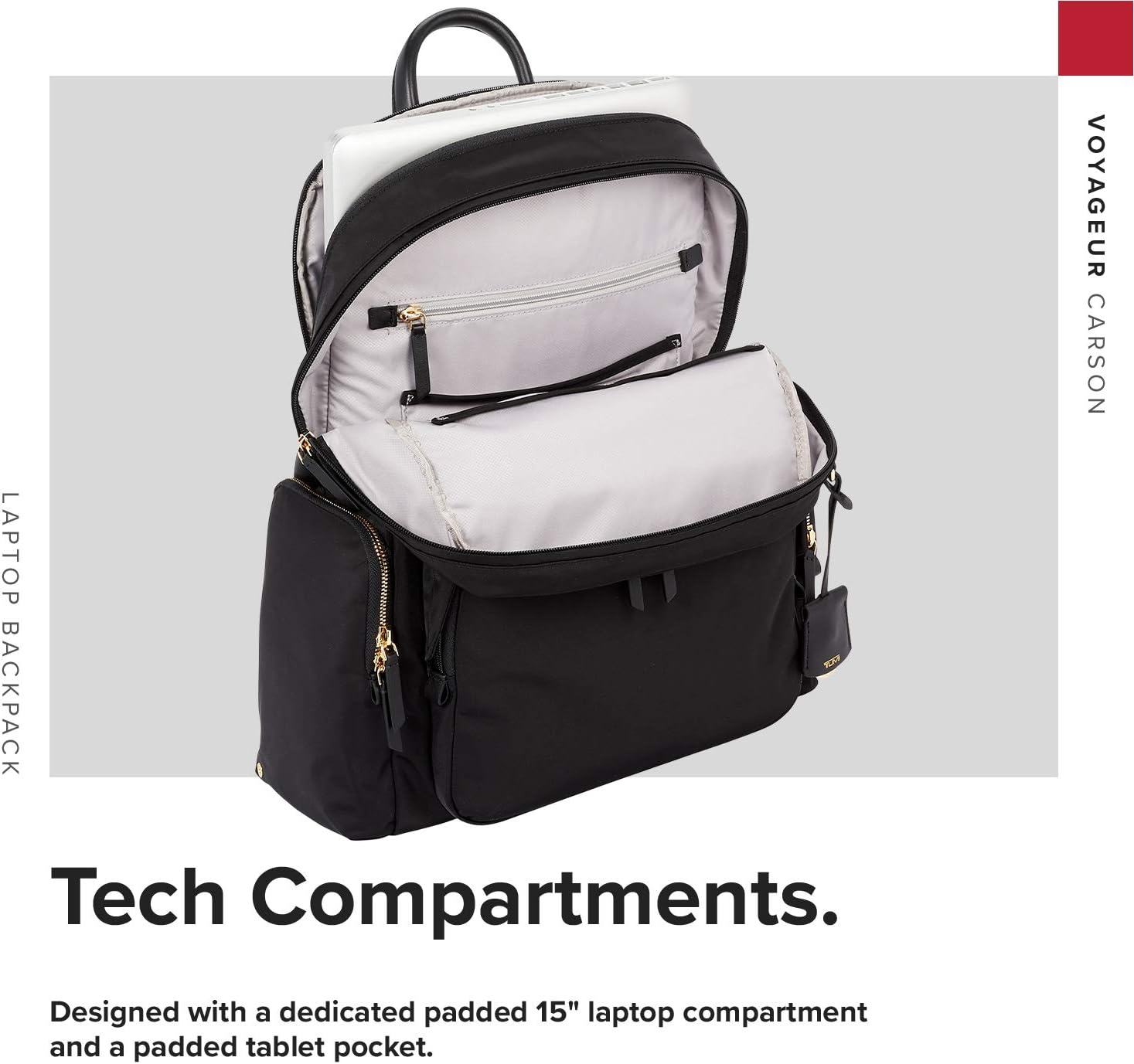 INTERNAL FEATURES: Laptop compartment (15"); tablet pocket; 1 large open pocket; 2 open pockets; zip pocket with TUMI tracer; card pocket; pen pocket