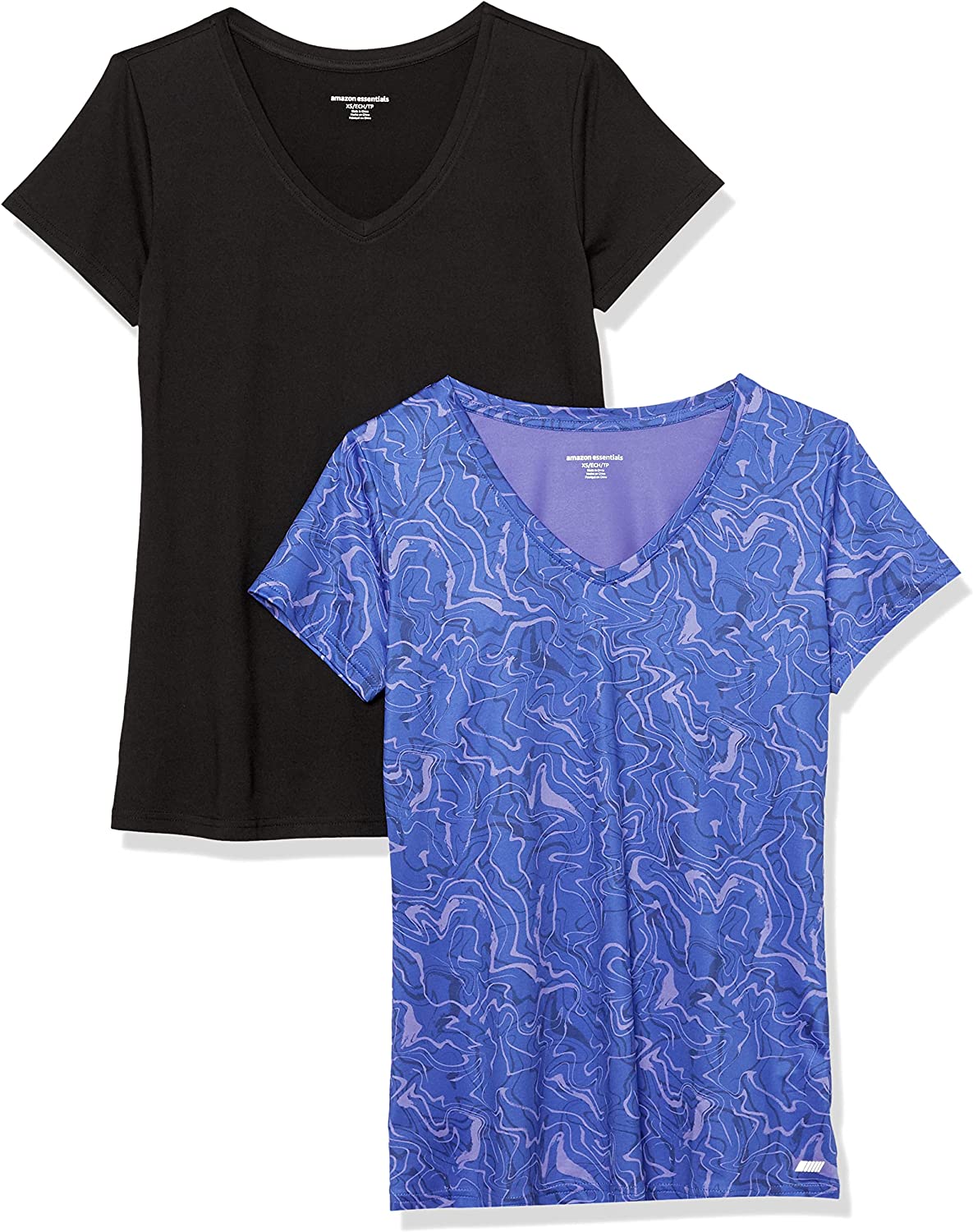 Amazon Essentials Women's Tech Stretch Short-Sleeve V-Neck T-Shirt (Available in Plus Size), Multipacks