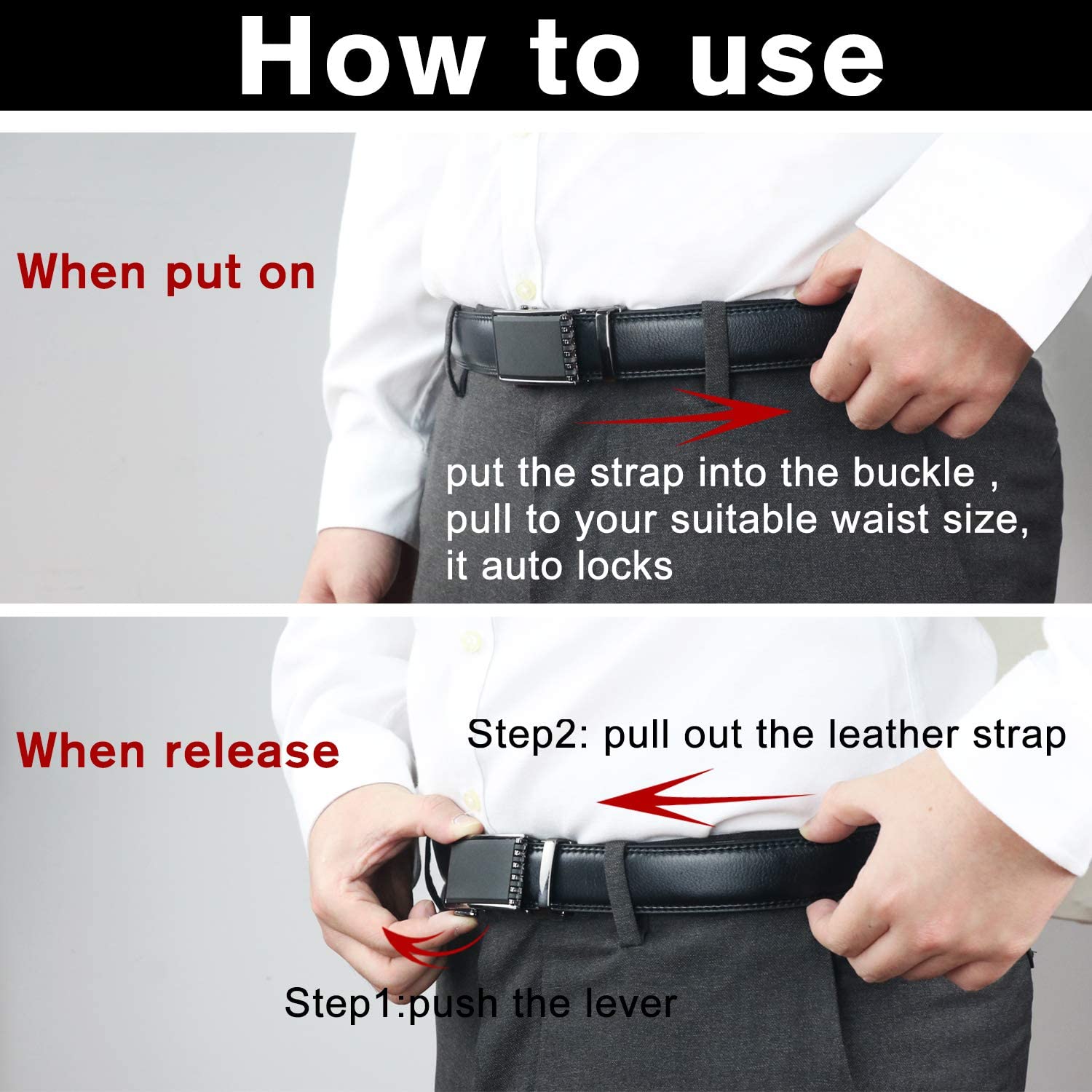 Men's Belt Ratchet Leather Dress Belt with Automatic Buckle 35mm Wide 27"-40"