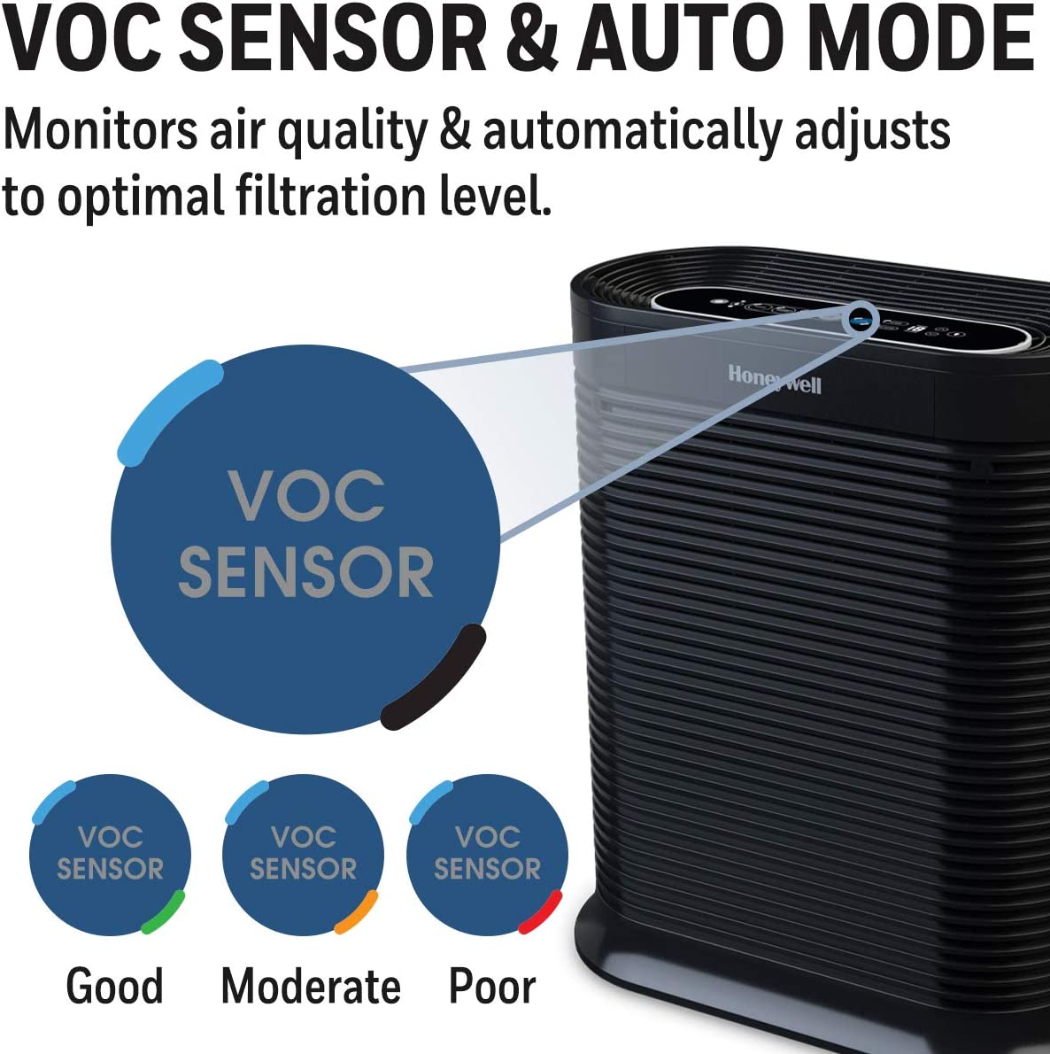 This Honeywell HEPA Air Purifier with Bluetooth includes a Certified Honeywell HEPA Filter that helps capture up to 99.97% of the following microscopic airborne allergens and particles: dust, pollen, pet dander, dust mite debris and smoke.* Recommended for extra large 465 sq. ft. rooms. This Honeywell air purifier can circulate air up to 4.8 times an hour.** If you have pets or stale indoor air, air purifiers help deliver cleaner, fresher air. Your Bluetooth Smart v4.0 compatible iPhone or Android device can be used as a remote control for your air purifier. You can operate your smart air purifier from another room in your home within 30 feet of the Bluetooth Smart device. The App also offers additional features not available on any standard air purifiers, such as proximity sensing for auto shut-off/turn on, air quality alerts and auto-operation based on conditions in your zip code and operation scheduling. Simply download the free App to your compatible mobile device. This Honeywell HEPA Air Purifier earned the ENERGY STAR label by meeting strict energy efficient guidelines set by the U.S. EPA. Always purchase Genuine Honeywell replacement air purifier filters. They are certified to help capture odors and the following microscopic allergens and particles: dust, pollen, pet dander, dust mite debris, and smoke.* Other compatible filter replacements are not guaranteed to offer the same performance or efficiency. Disclaimers: * From the air that passes through the filter, 0.3 microns and larger. ** Based on 3rd party independent CADR testing for the smoke CADR value when operated at the highest level. Air circulation depends on many factors, such as room size and configuration. There is no guarantee that all of the air in a room will pass through the filter. The ENERGY STAR name and mark are registered trademarks owned by the U.S. EPA.