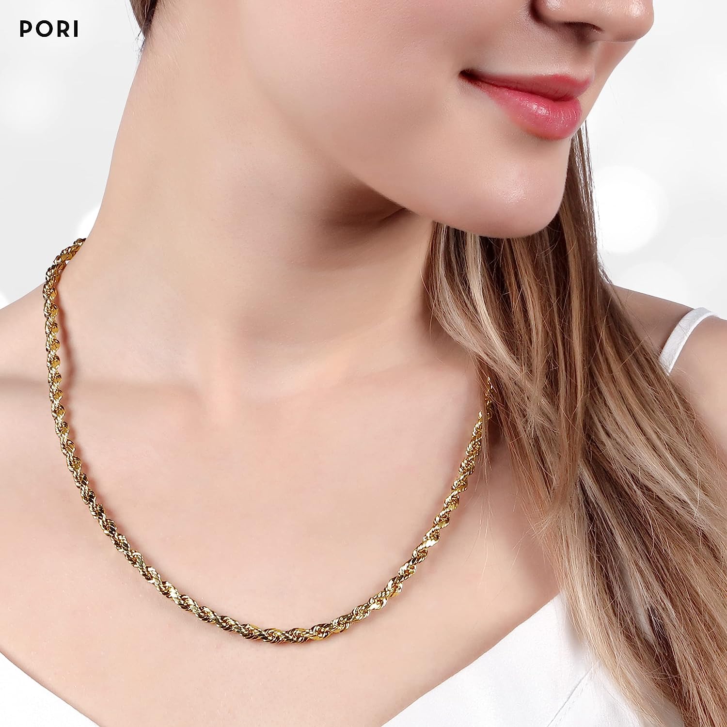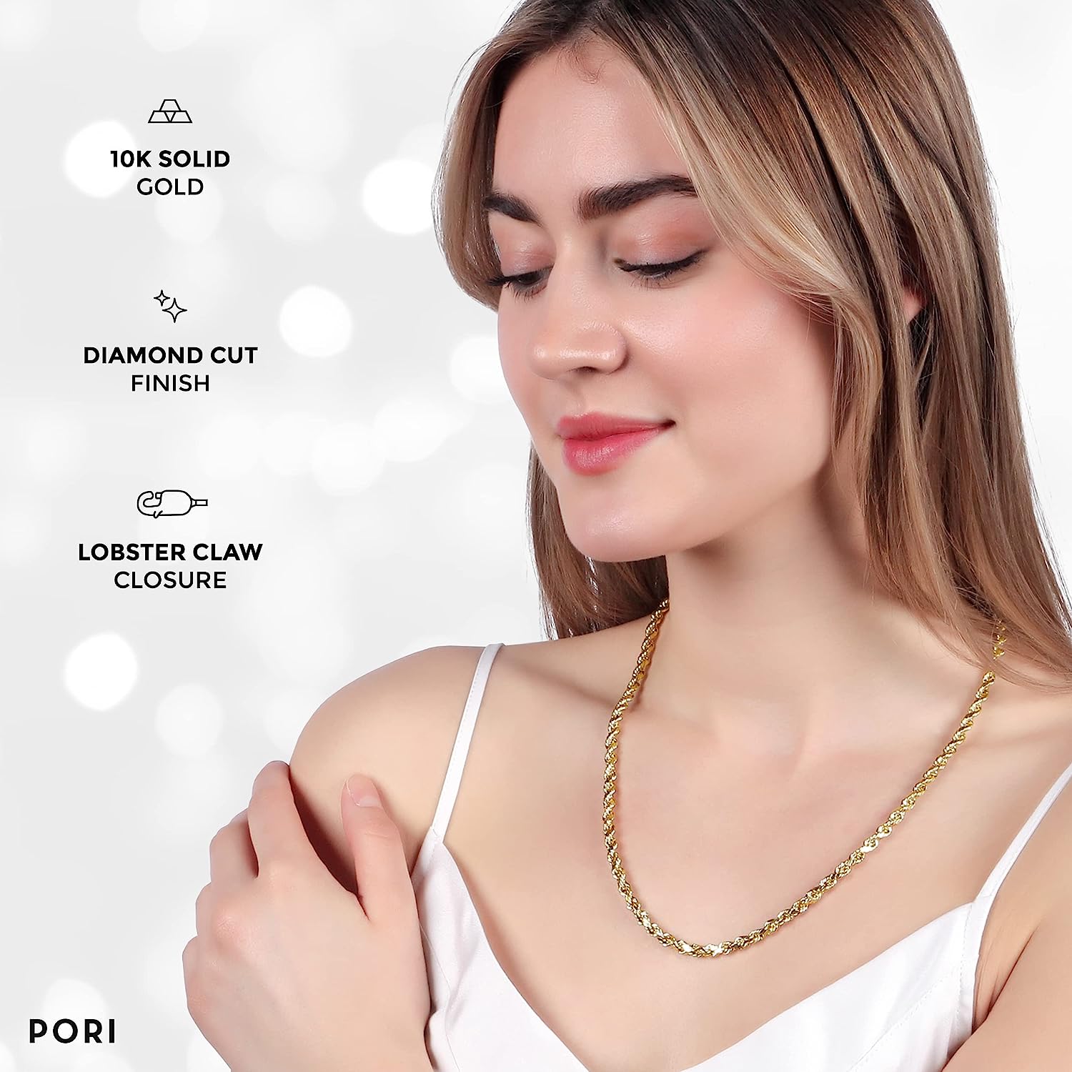 SAFE-TO-WEAR 100% HYPOALLERGENIC: Our jewelry is made of lead and nickel-free materials, these durable, high-quality 10k gold rope chains are safe even for sensitive skin, and won't cause rashes or breakouts.