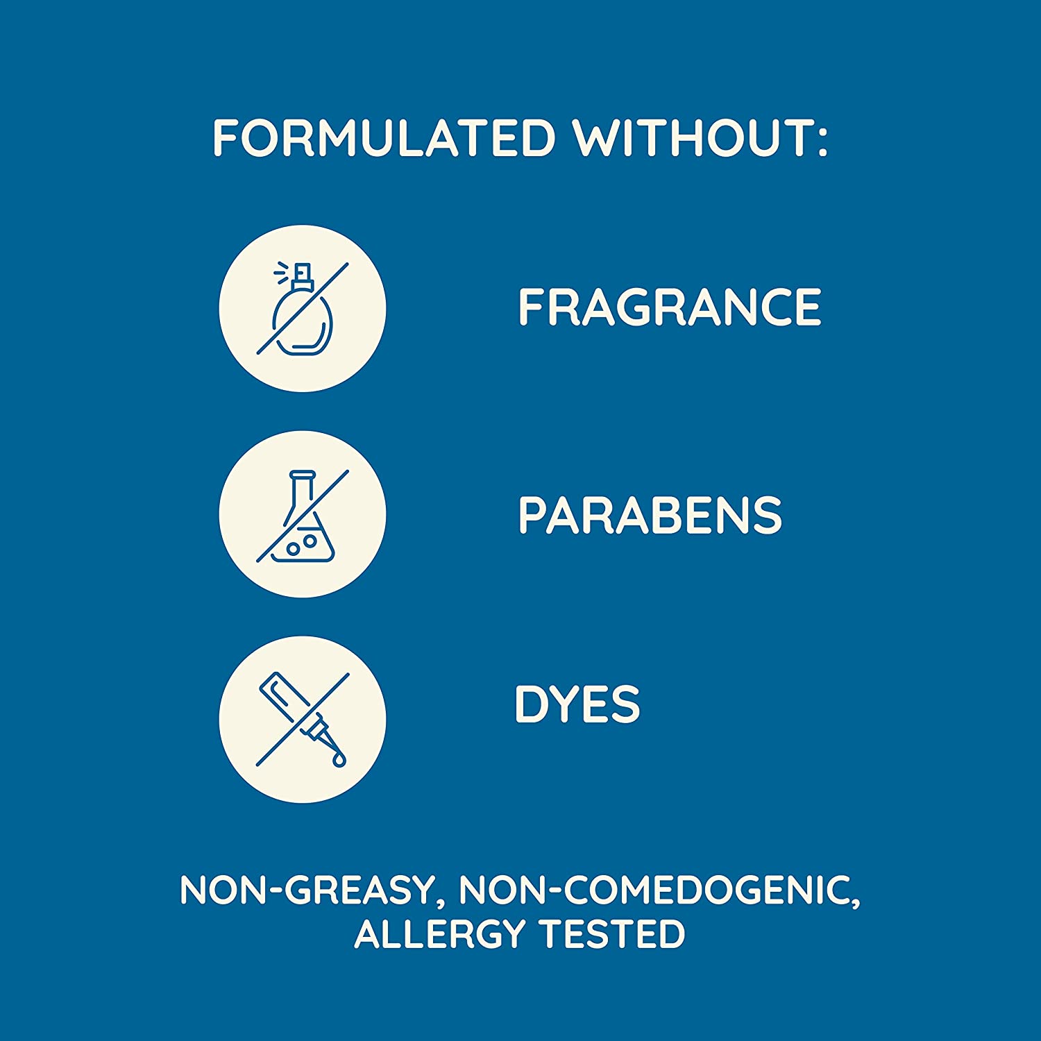 • The non-greasy, non-comedogenic formula of this skin relief moisturizing lotion has been allergy tested and is specially formulated for sensitive skin and is free of fragrances, parabens and dyes