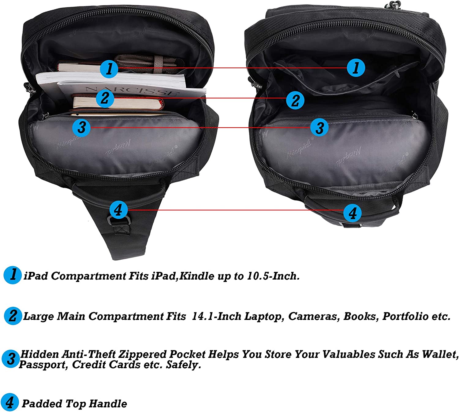 • ✈【Lightweight】12.2in(L) x 16.5in(H) x 5.1in(W); fits laptop up to 14.1-Inch without laptop sleeve or case. Weight: approx. 1.54LB.