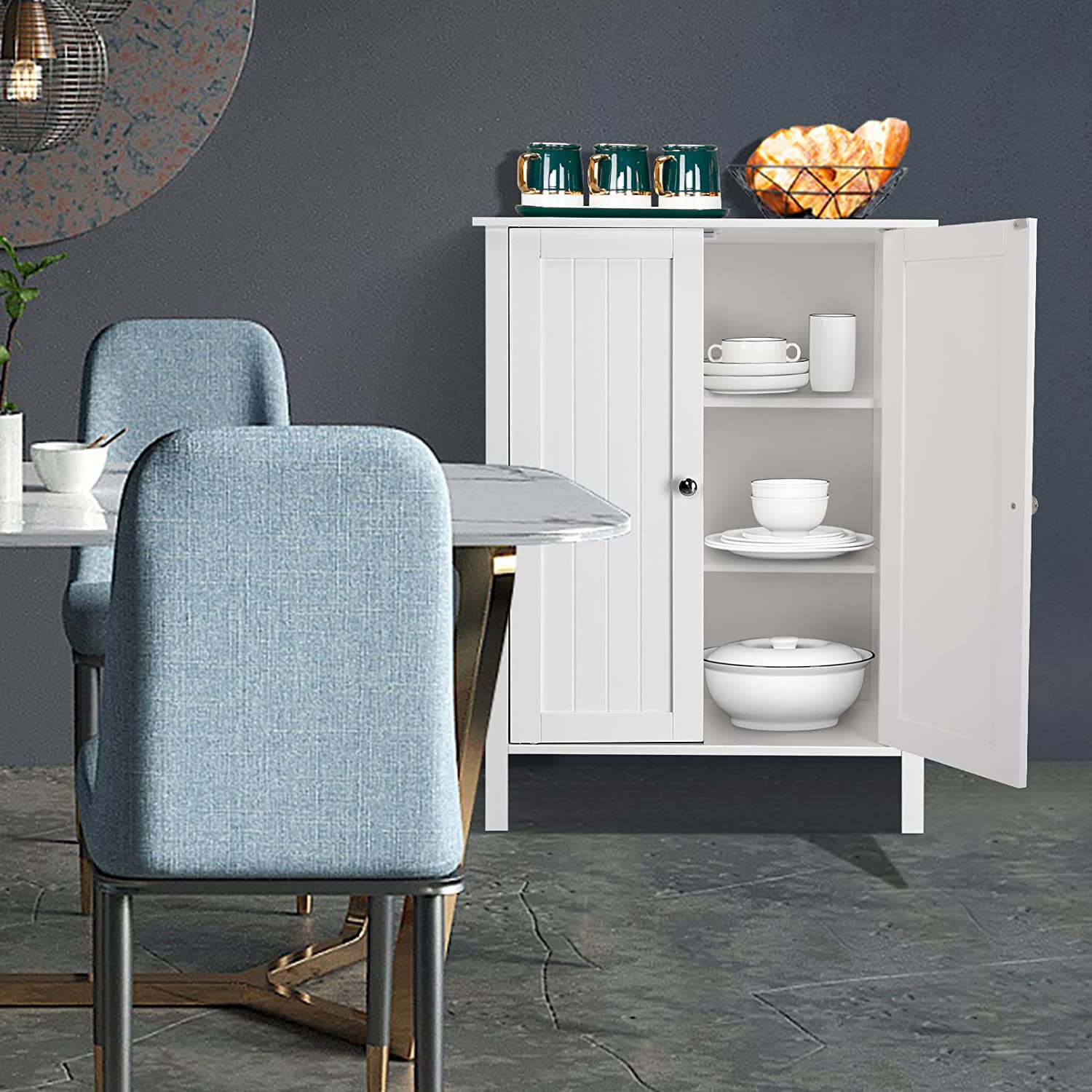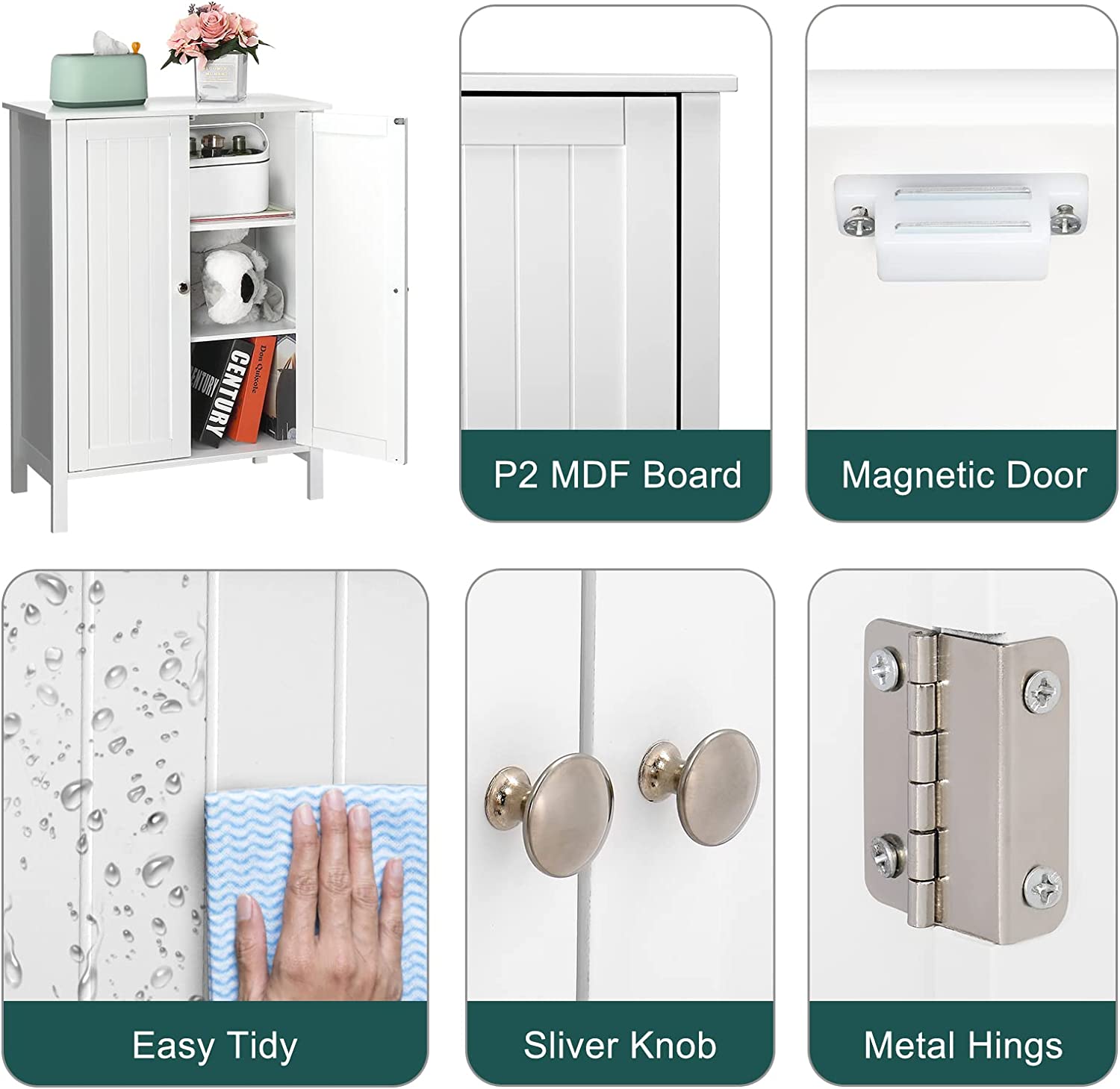 【Selected Material】--This standing cabinets with doors is constructed of durable upgraded P2 MDF( Medium Density Fiberboards) prevents moisture & water-resistant wooden material is suitable for humid environment, to keep your items and for long-term use