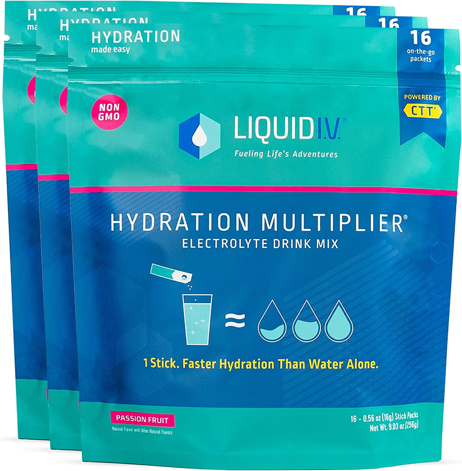 • Liquid I.V. Hydration Multiplier – Hydrate 2x faster than water alone with Hydration Multiplier, a great-tasting electrolyte drink powder with five essential vitamins and 3x the electrolytes of traditional sports drinks. Whether you’re in need of hydration for exercise, travel, or long nights, Liquid I.V. Hydration Multiplier packets have you covered.