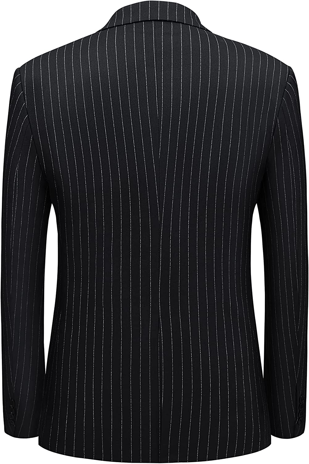 Button Fly closure, slim fit notch lapel flap pocket. Premium center vent two-button single breasted stripe suit jacket with matched four-button vest with back adjustable belt for better fit and classic trousers.