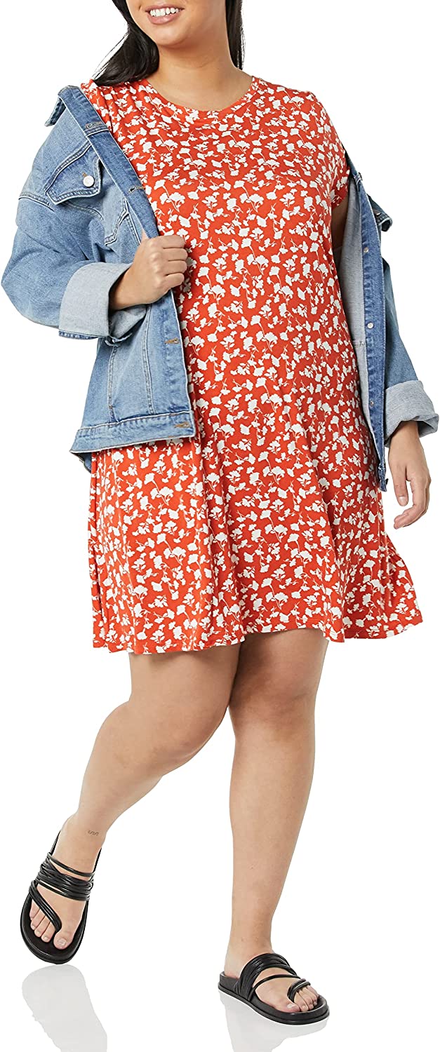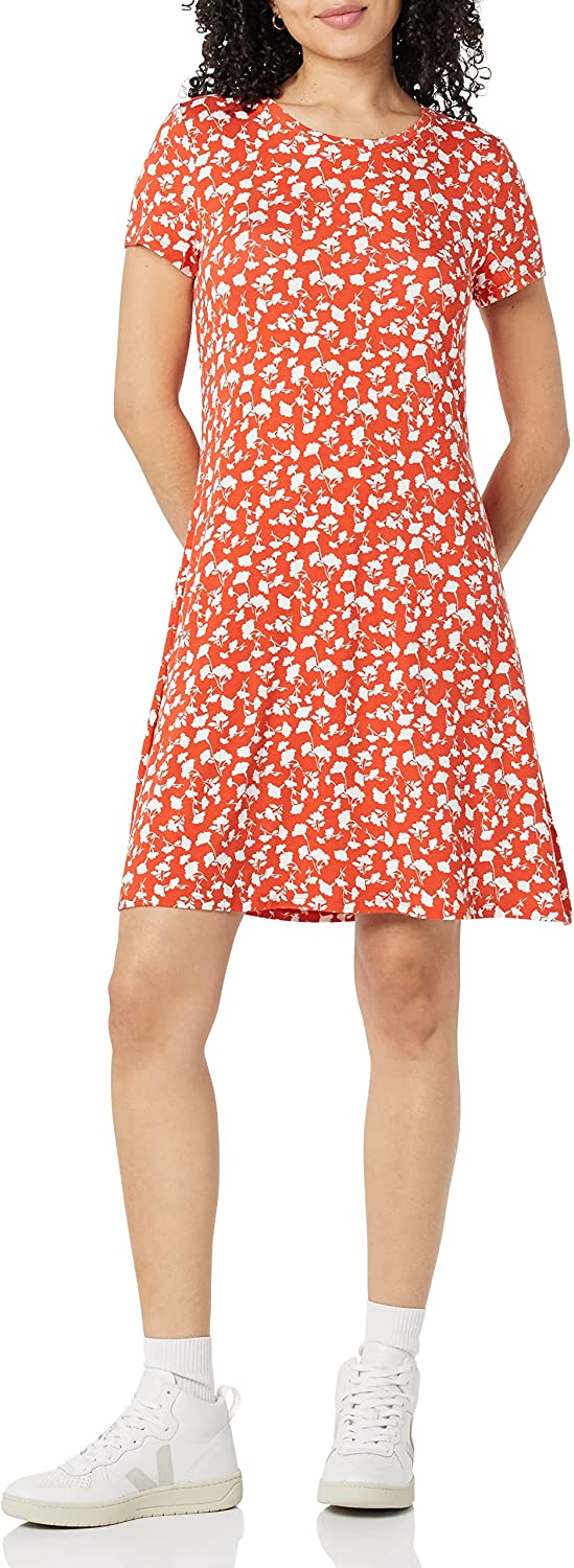 Amazon Essentials Women's Short-Sleeve Scoop Neck Swing Dress (Available in Plus Size)