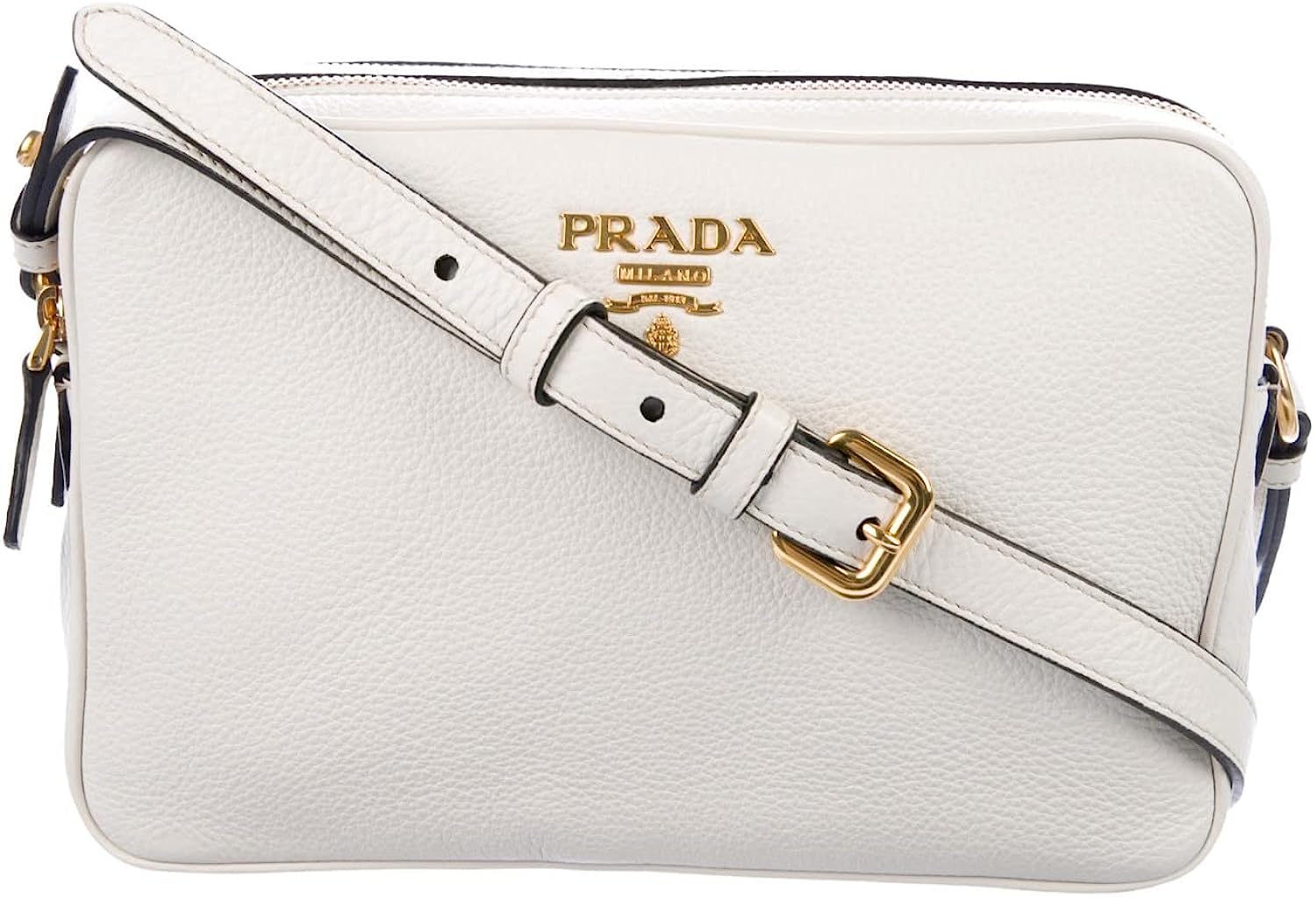 Prada Women's White Vitello Phenix Leather Crossbody HandBag 1BH079