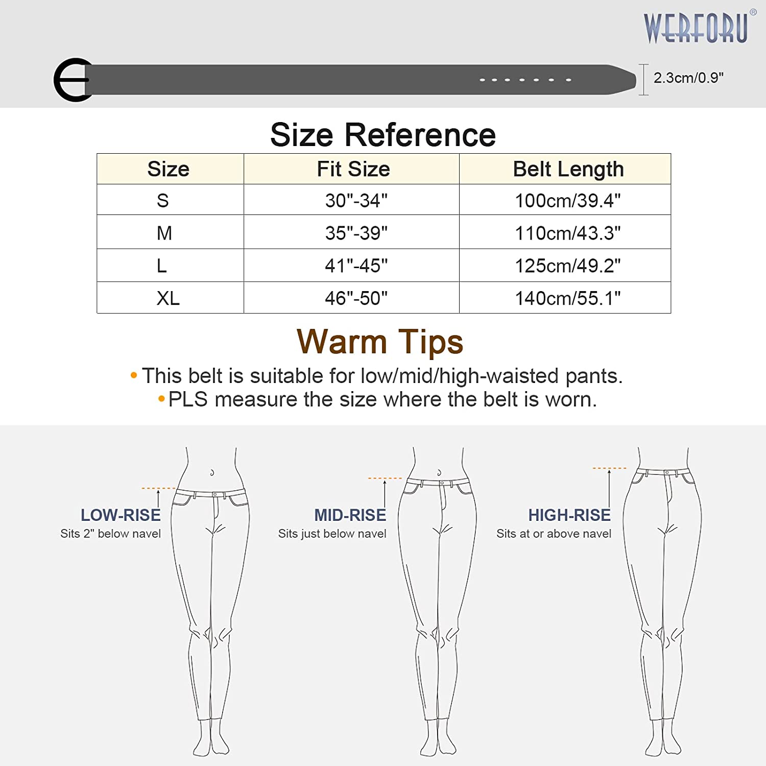 • FLEXIBLE SIZE - The vintage women jeans belt fit for size 30"-34"/35"-39"/ 41"-45"/46"-50". The belt length are 39.4"/43.3"/49.2"/55.1". We enclosed a puncher in the package for you to trim the suitable size if the the pants belt is too long.