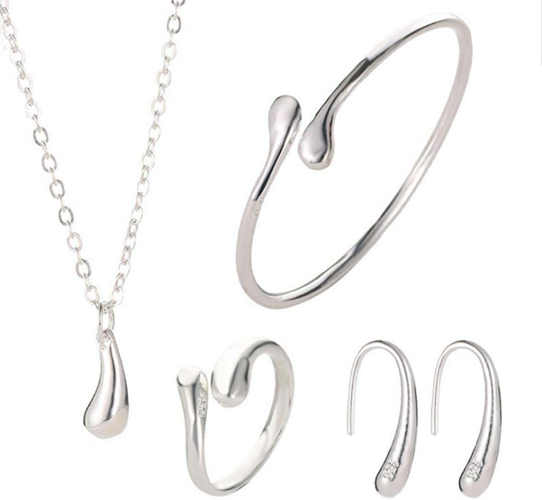 4PCS 925 Sterling Silver Jewelry Set for Women Teardrop Pendant Necklace Earrings Bracelet Ring Fit with Party Meeting Dating Wedding Daily Birthday Gift