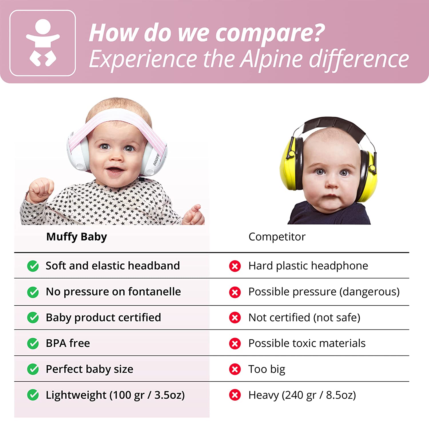 ADJUSTABLE AND SAFE | Alpine Muffy baby and toddler ear protection has a safe and practical design, without any hard parts that can be harmfull or dangerous. Ear caps are made with multiple layers of noise reducing foam and soft padding for good closure. The upgraded headbands are anti-slip, comfortable and easily adjustable.
