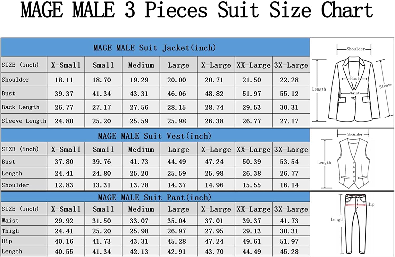 3-Piece Plaid Suit Size Chart