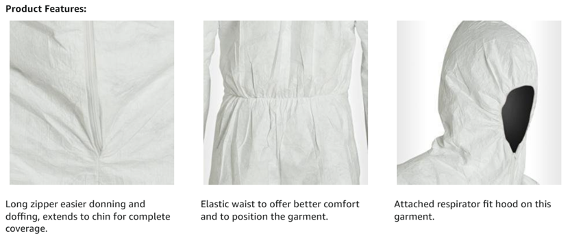 DuPont Tyvek 400 TY127S Disposable Protective Coverall with Respirator-Fit Hood and Elastic Cuff, White, 3X-Large (Pack of 6)