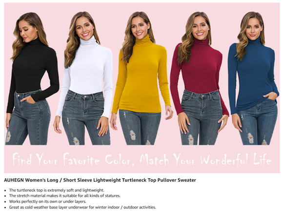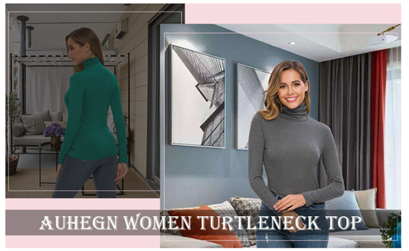 AUHEGN Women's Long Sleeve Lightweight Turtleneck Top Slim Fit Pullover T-Shirt (S-XXL)