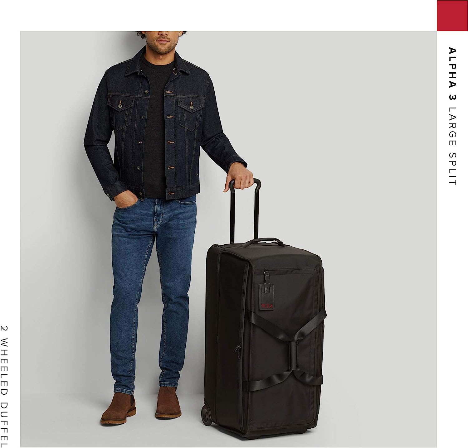 TUMI Alpha 3 Large Split 2-Wheel Duffel Bag - With Quick Zip Interior - Rolling Luggage for Men and Women - Black