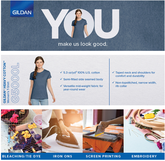 The Gildan Women’s Heavy Cotton T-Shirt is a go-to style for any female who wants to enhance her wardrobe with a basic that works with so many pieces. What makes it distinctly feminine is the semi-fitted, side-seamed silhouette combined with a narrow rib knit collar without top stitching. Decorate this versatile surface with screen printing, embroidery, iron-on transfers, bleaching or tie dye to enhance its appeal. Create a design collection by choosing companion styles for men, youth and toddlers.
