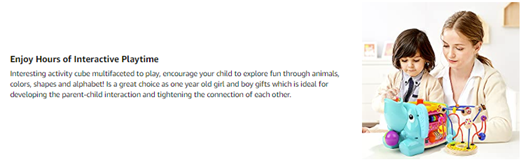 • GREAT GIFT FOR TODDLER:If you are searching a educational and fun gift for your toddler, this activity cube toy is an ideal choice. This perfect baby gift allows toddler to concentrate on for a long time, and will also be a hit with any toddler and approved of and appreciated by parents. It's a best gift for 1 2 year old boys and girls to grow and learning.