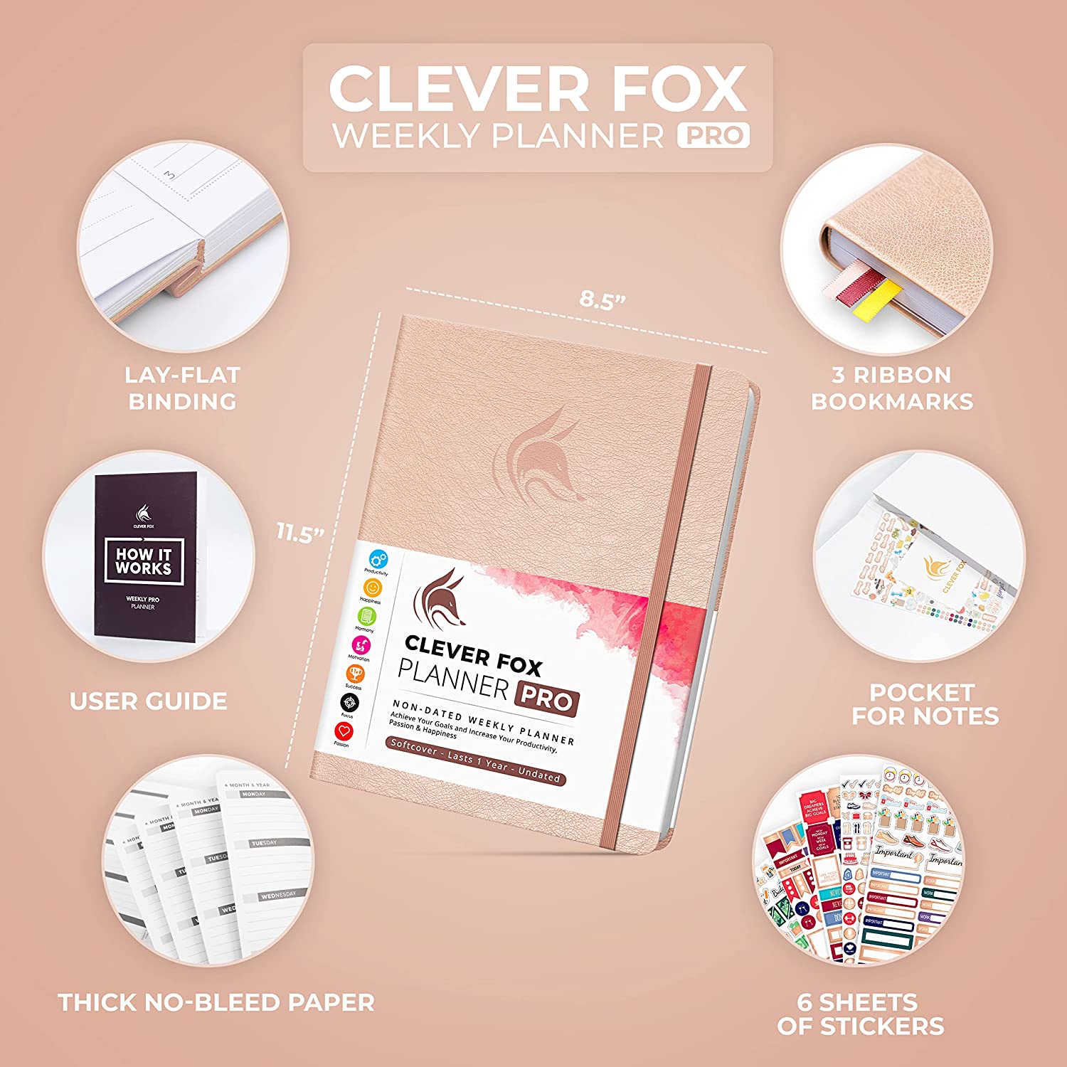 Clever Fox Planner PRO – Weekly & Monthly Life Planner to Increase Productivity, Time Management and Hit Your Goals – Organizer, Gratitude Journal – Undated, 1 Year – Softcover, 8.5x11″ (Rose Gold)